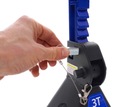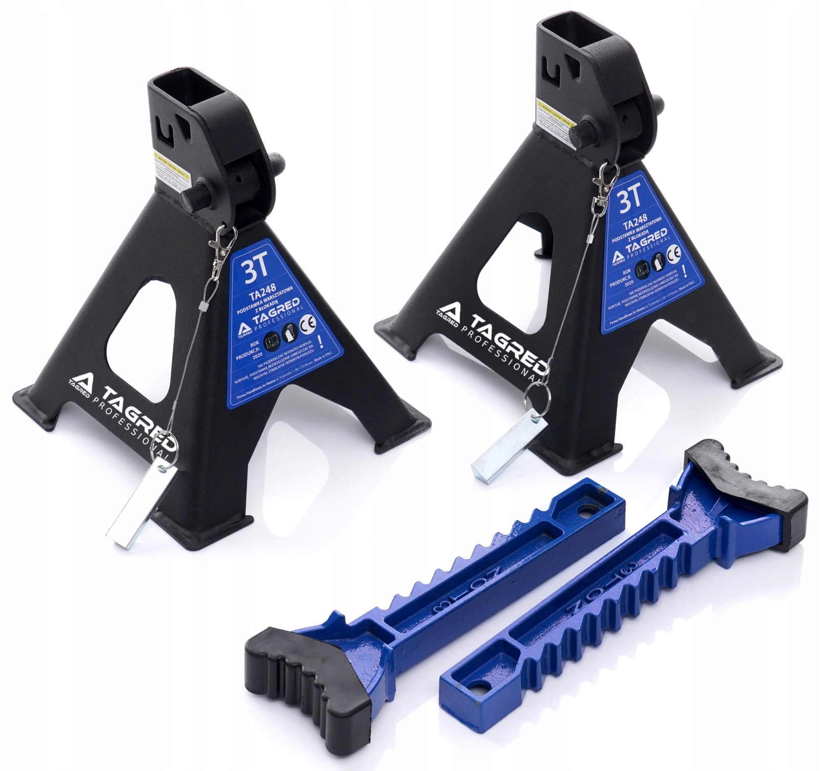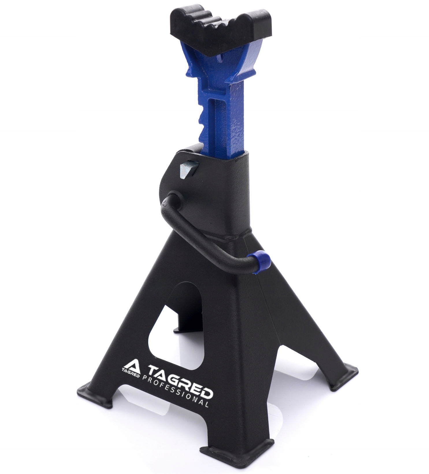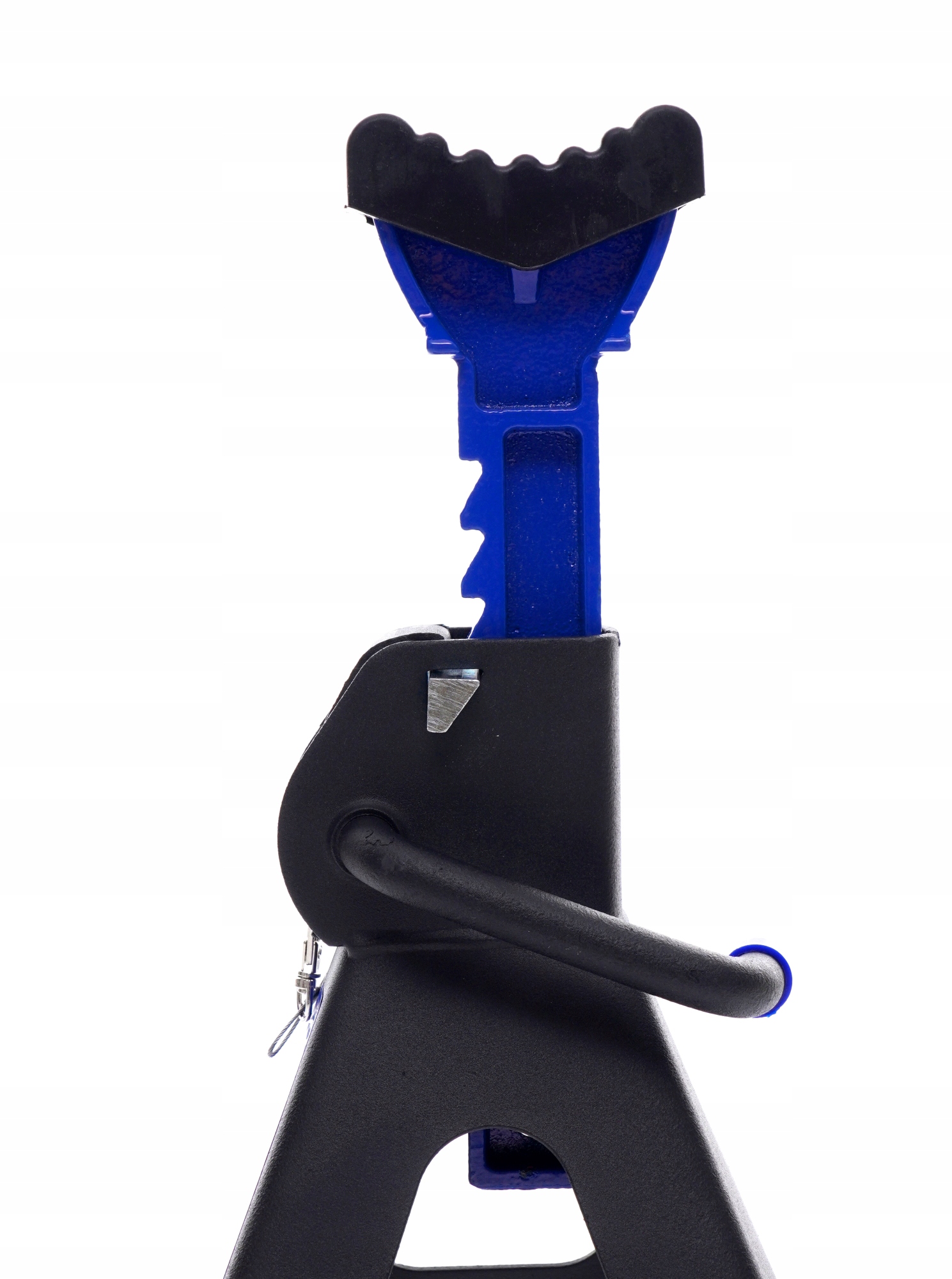 Специальная, дополнительная блокировка обеспечивает храповой механизм от случайного отъездом колонны опоры. Pin укомплектованный в стальной трос, прикрепленной к корпусу козлы, что защищает его от утери.