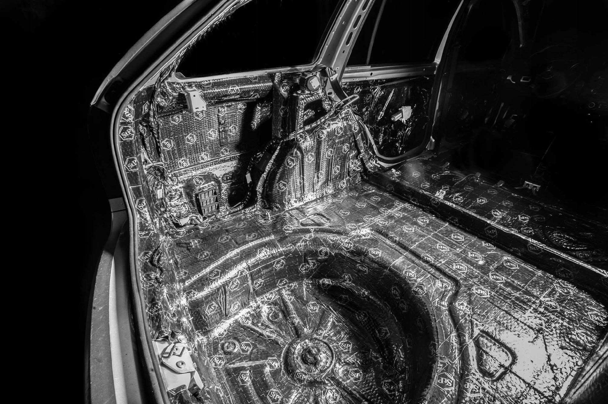 Бутиловый коврик STP Black Silver в сочетании с резиновыми пенами самый эффективный звукоизоляционный ламинат.