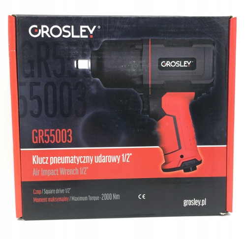 Klucz pneumatyczny 1/2" marki Grosley z maksymalnym momentem obrotowym 2000 Nm.