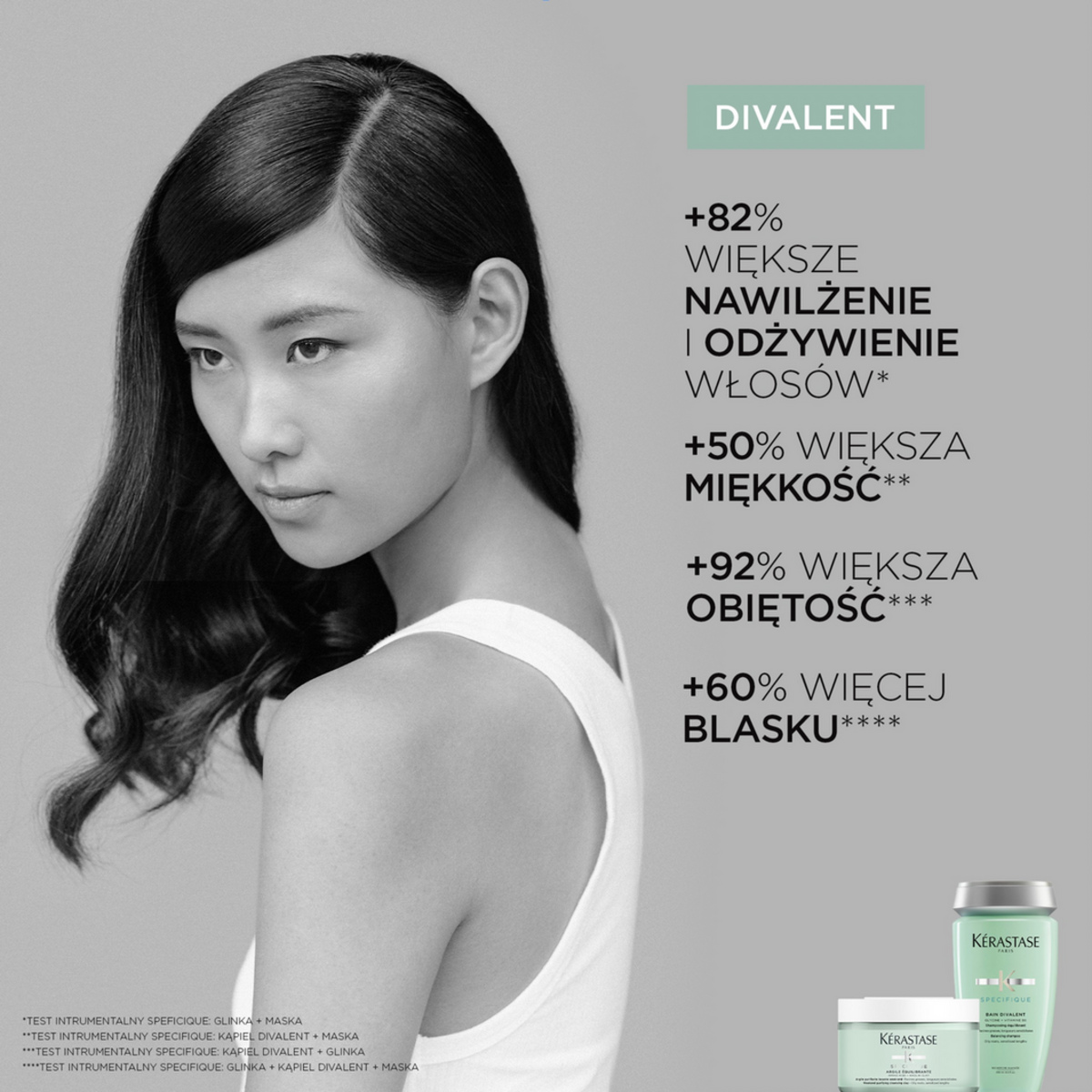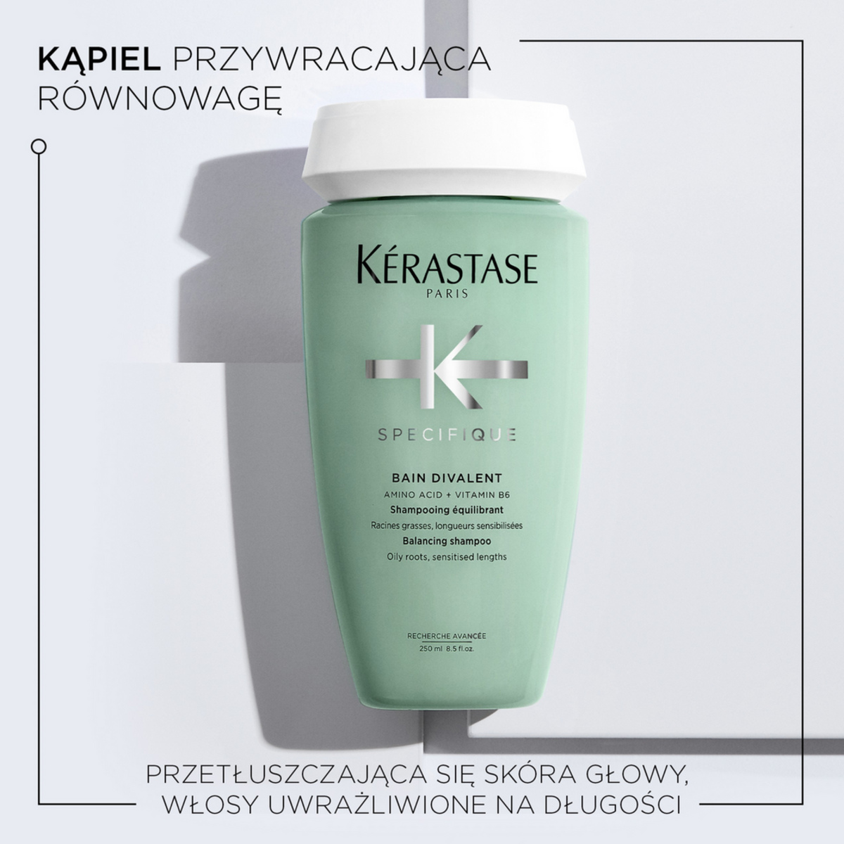 Odświeżający szampon Divalent Spécifique 250 ml oczyszcza, odżywia i zapobiega przedwczesnemu przetłuszczaniu się włosów. Bogata formuła na bazie glinki kaolinowej i montmorylonitowej, aminokwasów oraz mentolu przywraca równowagę skóry głowy, delikatnie ją oczyszcza i odżywia uwrażliwione obszary włosów oraz ich suche końce. Włosy są oczyszczone, niesamowicie miękkie, lekkie i otulone orzeźwiającym zapachem.
