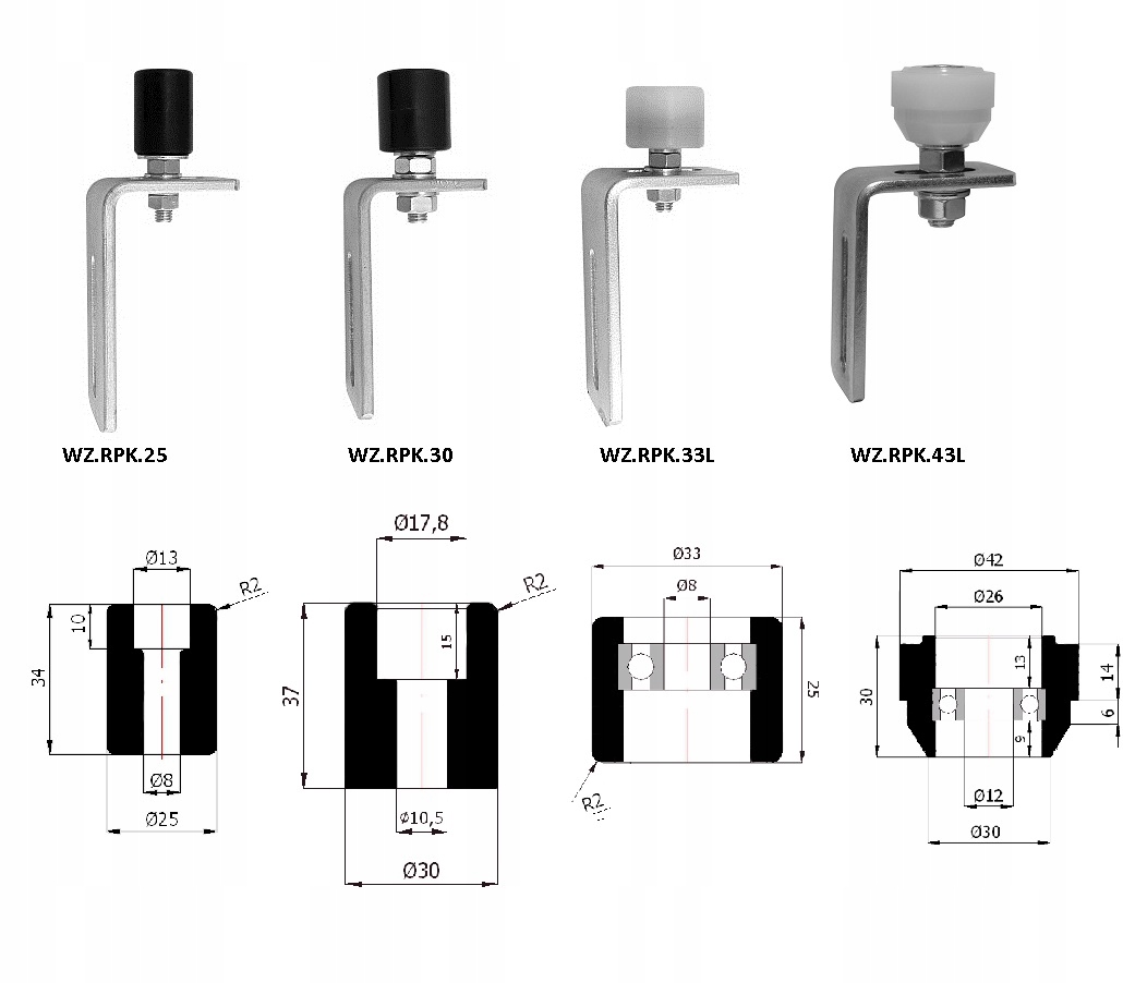 Prosimy o wybór odpowiedniej rolki prowadzącej do zestawu. W uwagach proszę o podanie symbolu . W przypadku braku informacji wysyłamy rolkę Ø 33mm z łożyskiem RB-33LK