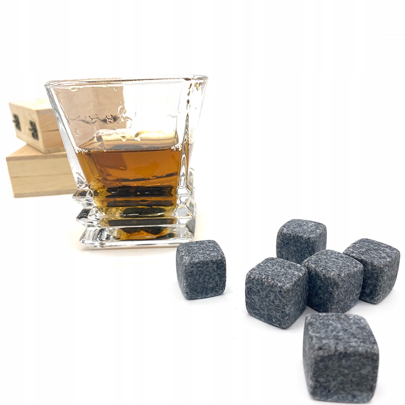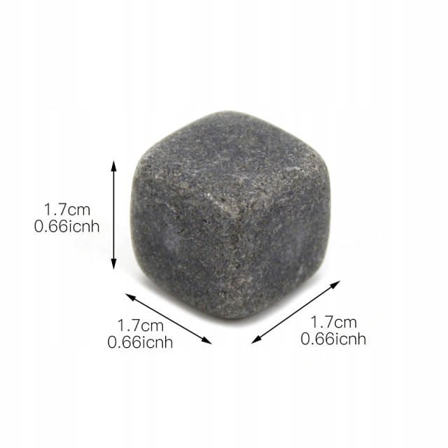 Zestaw kamiennych kostek lodu do chłodzenia drinków i napojów. W przeciwieństwie do swoich klasycznych odpowiedników, te wykonane z granitu, kostki nie zmieniają jakości napoju, a co za tym idzie pozwalają nam cieszyć się pełnią jego smaku. Są trwałe, całkowicie bezpieczne dla zdrowia i można ich używać wielokrotnie.