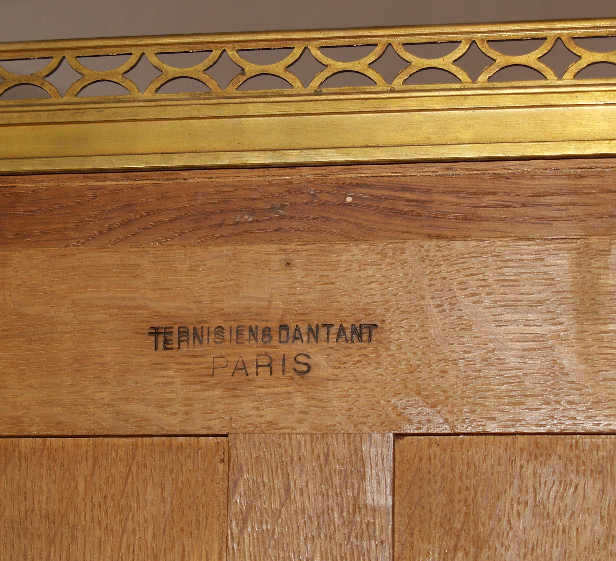 Sygnatura z tyłu mebla TERNISIEN & DANTANT PARIS. Paryż II połowa XIX w.