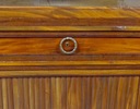 Konstrukcja dębowo-mahoniowa, okleiny mahoniowe, mosiężne listwy i okucia, blat marmur.