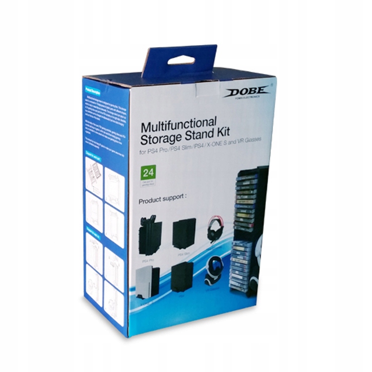 Dołączona podpórka do konsoli umożliwia pionowe ustawienie konsoli przy podstawce (opcja), podpórka jest regulowana i pasuje do każdej wersji konsoli PS4 oraz do Xbox One S