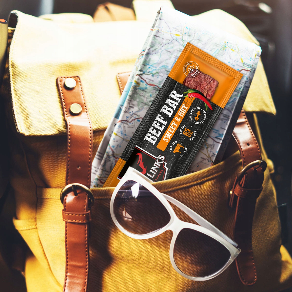 Jack Link’s Beef Bar nie trzeba przechowywać w lodówce, jest lekki i zajmuje niewiele miejsca, dlatego zawsze możesz mieć go ze sobą. To doskonała, alternatywa dla innych, tradycyjnych przekąsek, bez glutaminianu sodu i glutenu.