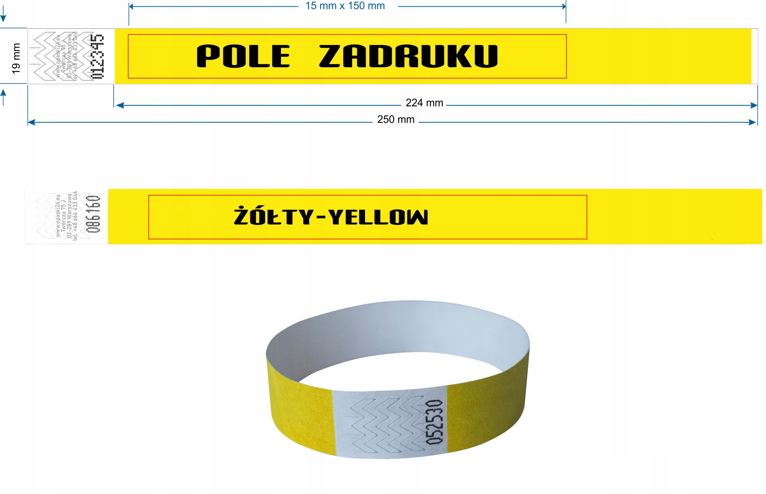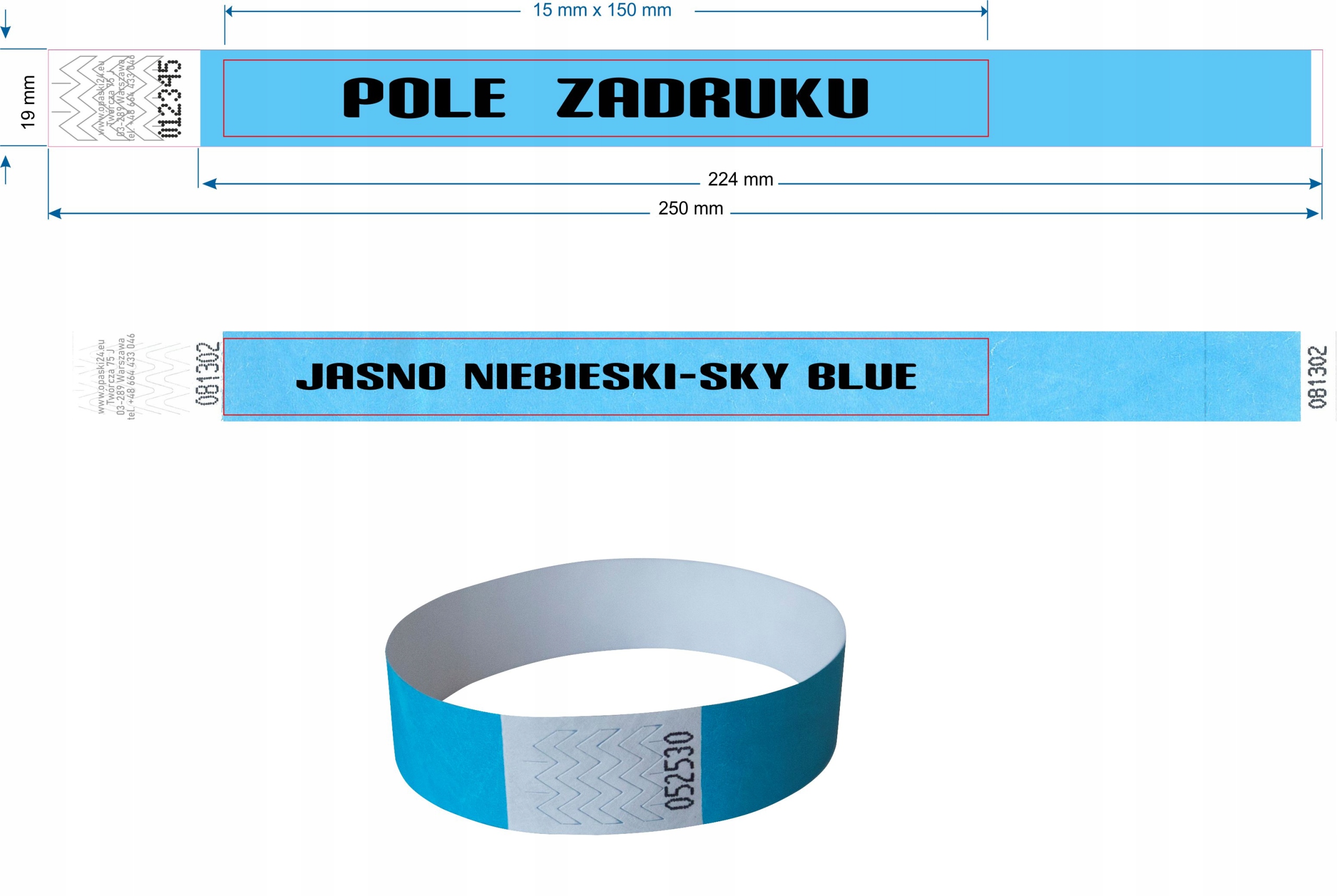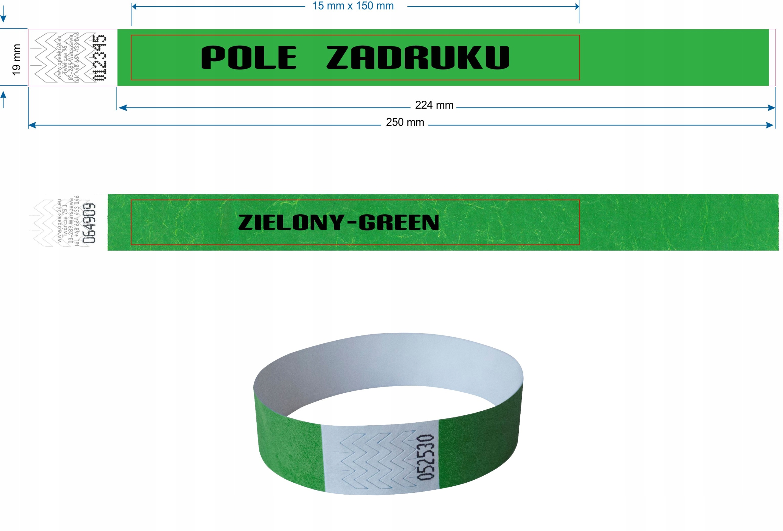 długość i szerokość opaski na rękę 250 x 19 mm