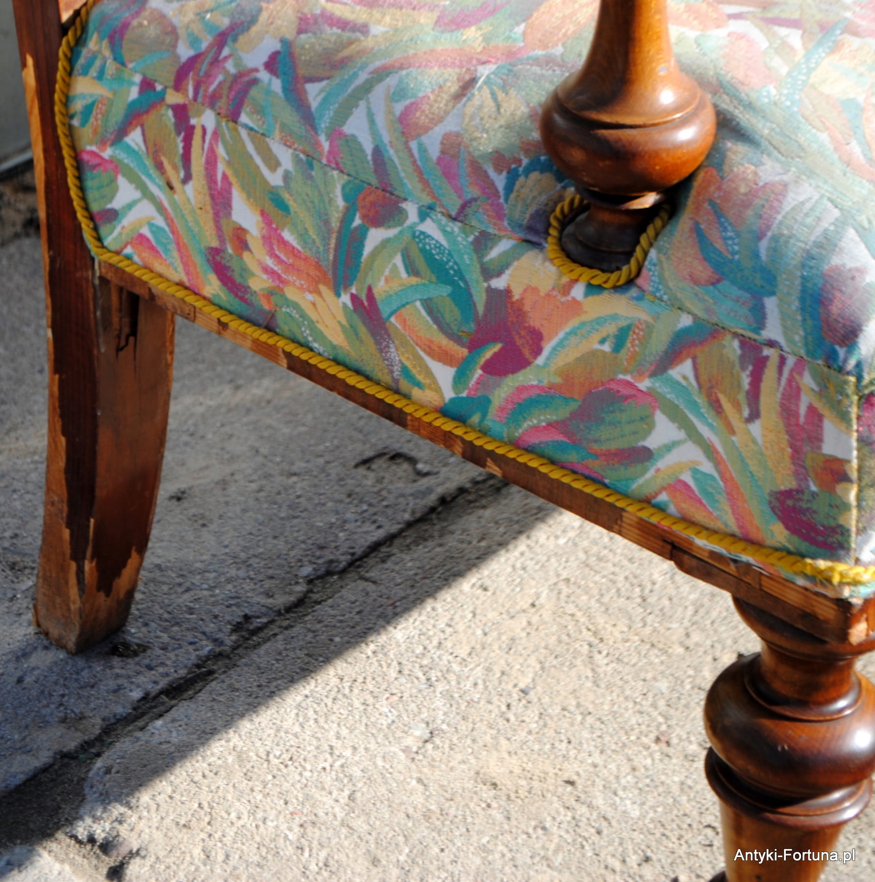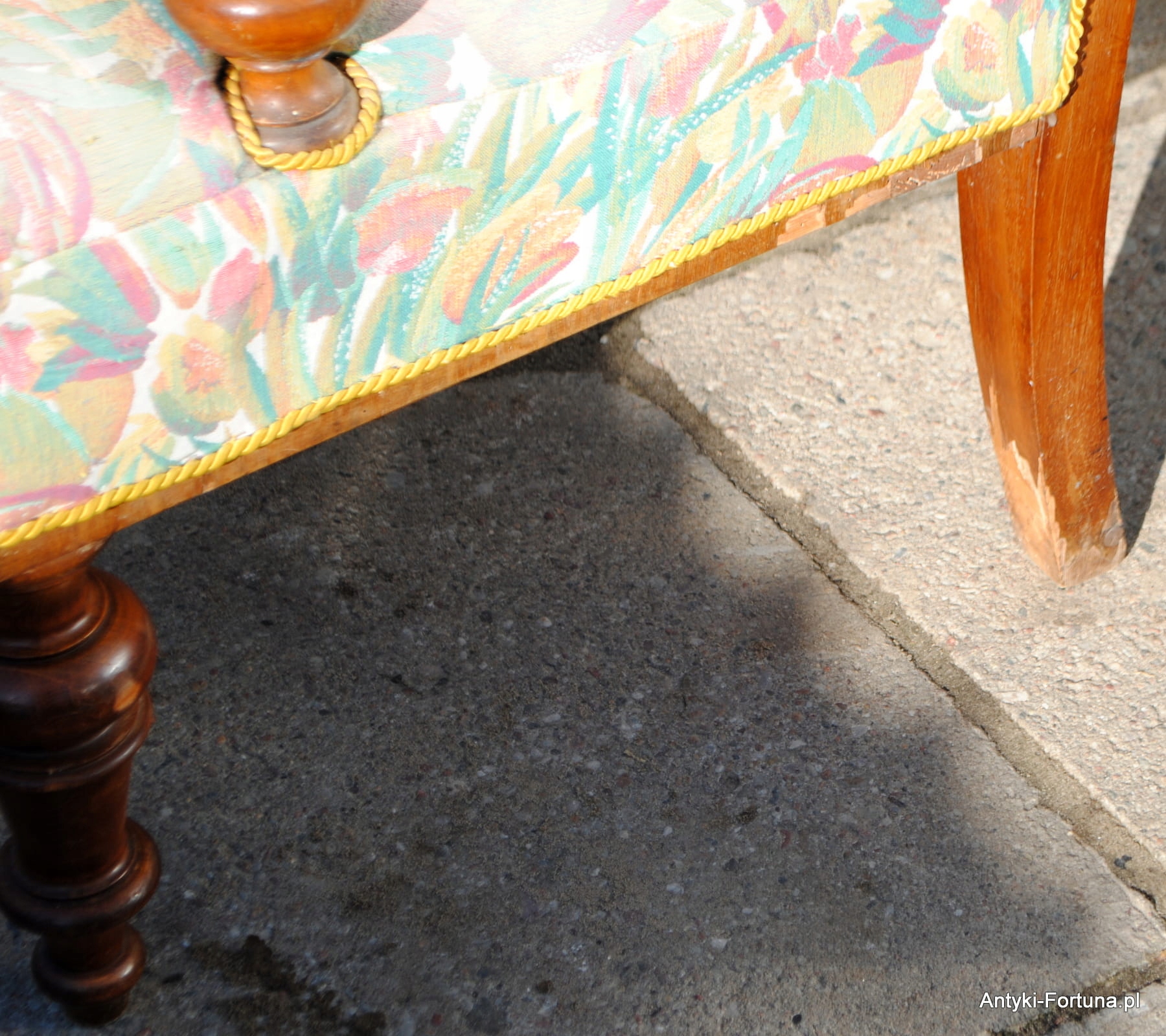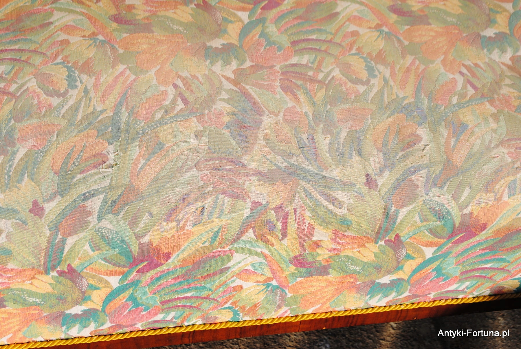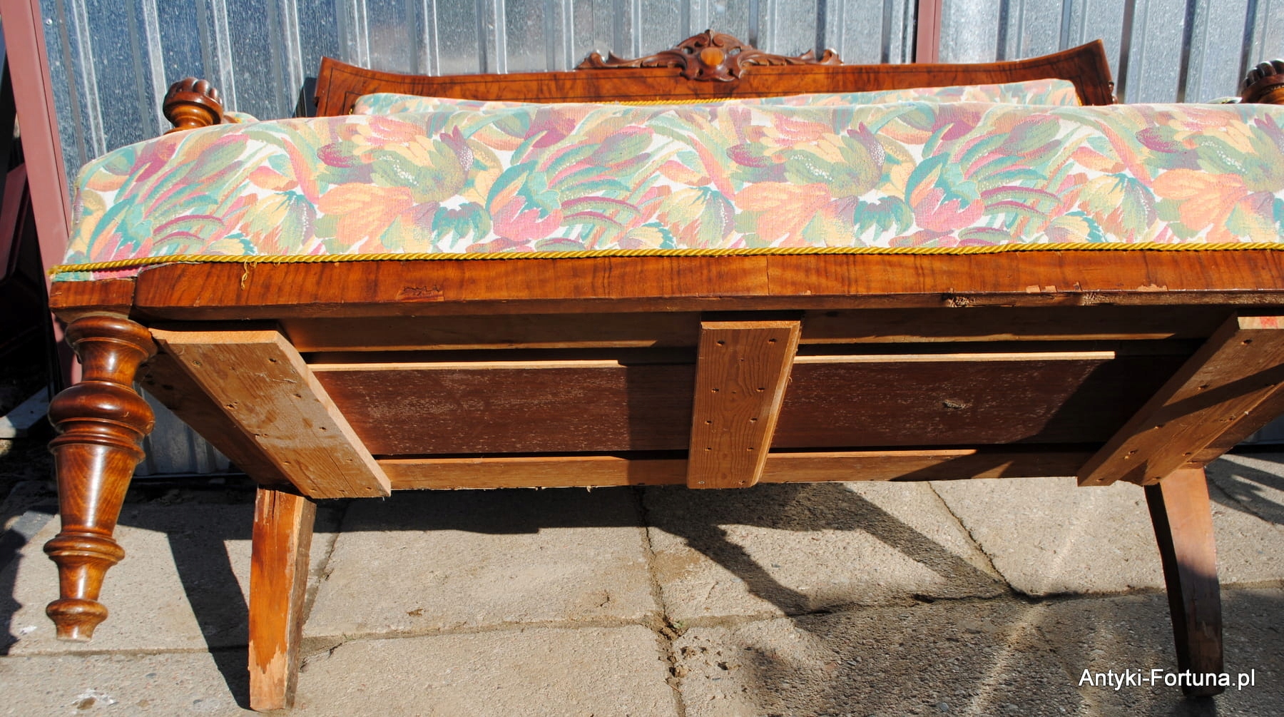 Stara sofka z koroną , stabilna , stan jak na zdjęciach. Delikatne ryski , przytarcia oraz ubytki forniru , była w normalnym użytkowaniu. Obicie w kilku miejscach delikatne przetarcia , więc raczej do wymiany . Wymiary : szer całkow 125 cm, cm gł 47 cm , wys 106 cm , wys do siedziska 49 cm . Na sprężynach .