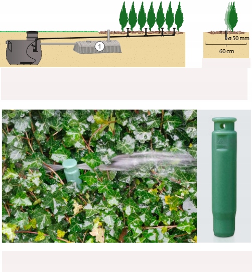Благодаря использованию запатентованных линейных спринклеров GREEN SHOWER эта система позволяет использование очищенных сточных вод для орошения растений, расположенных в разных частях сада. Можно спроектировать, например, прямолинейное, круговое или другое орошение.
