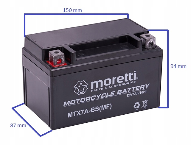 W akumulatorach AGM Moretti elektrolit jest całkowicie wchłonięty i unieruchomiony przez specjalne separatory z maty szklanej. Zastosowane maty szklane umożliwiają pracę akumulatora pod zwiększonym ciśnieniem, co zwiększa trwałość przy pracy cyklicznej i zapewnia wydajność prądu rozruchowego. Niska rezystancja wewnętrzna umożliwia krótkotrwały pobór dużych prądów.