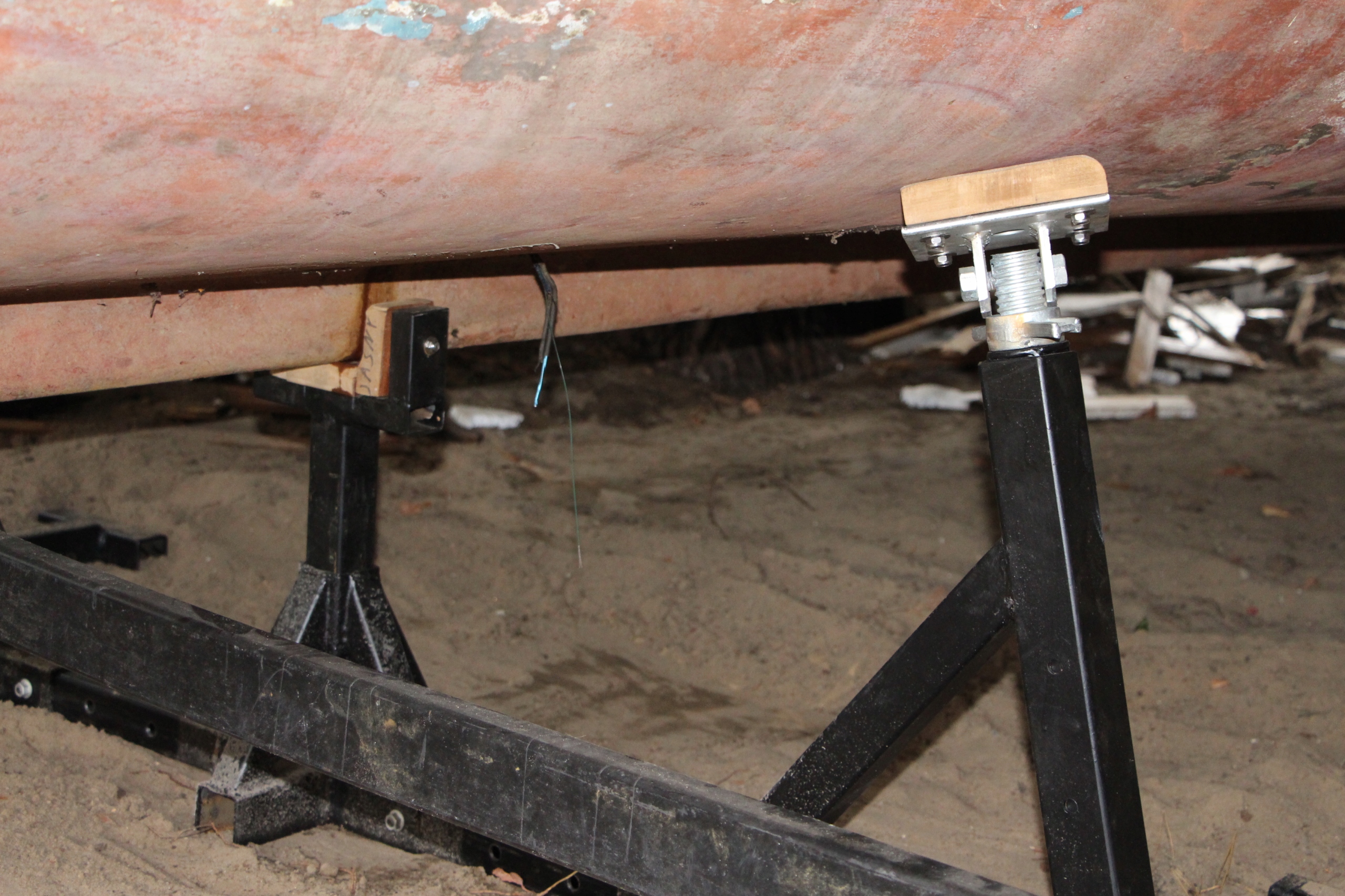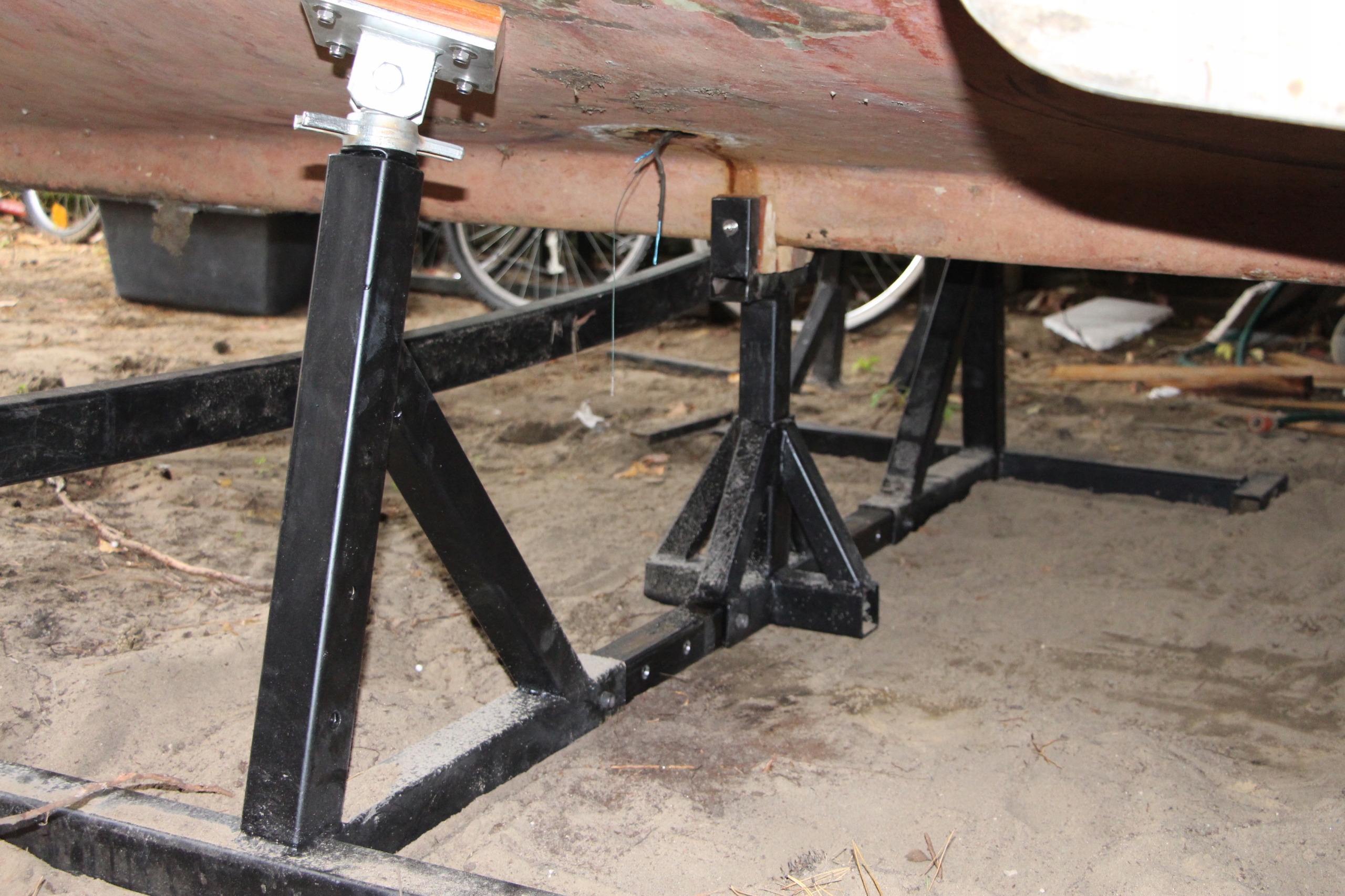 Mam do zaoferowania profesjonalne o szerokim stopniu regulacji (wysokości 60-130cm i szerokości 130-200cm) podpory dla jachtu , łodzi do sezonowania na lądzie, zestaw dla jednostek o ciężarze do 4 T.. Cena dotyczy jednej szt./ jednego zestawu (jak na zdjęciu) o ściance 3 mm - o grubszej ściance 4 mm cena na życzenie.