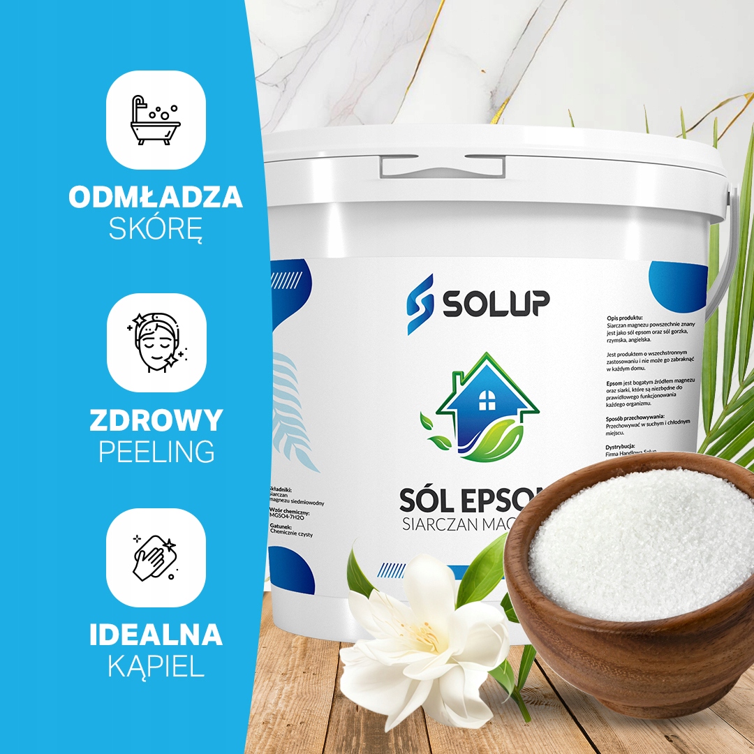 Sól Epsom, znana także jako siarczan magnezu, to naturalny związek chemiczny o wzorze chemicznym MgSO4 · 7H2O. Jest to biały, krystaliczny proszek, który ma wiele zastosowań, zarówno w medycynie, kosmetologii, jak i ogrodnictwie.