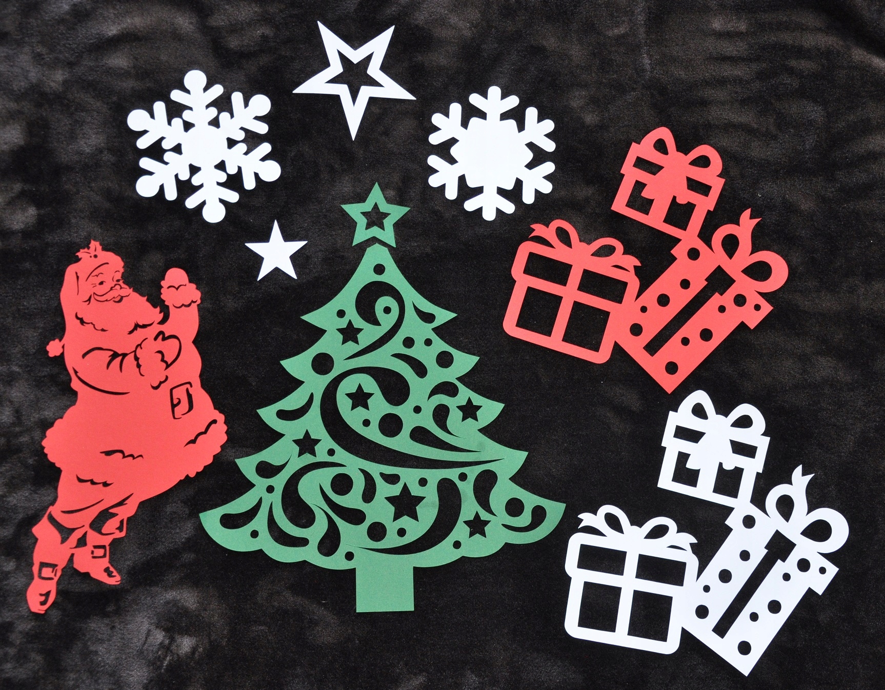 wymiary: choinka wys.32cm x szer. 28cm, śnieżynki 12,5cm, 11cm, 8cm, 5cm, 4cm, gwiazdki 10cm, 9cm, 5cm