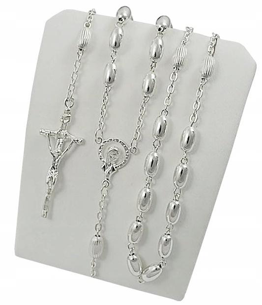 Różaniec jest nowy z metką, bezpośrednio od producenta. Zapakowany w gustowne Włoskie Pudełeczko Jubilerskie do wyboru Chrzest ,Komunia, Uniwersalne . Został precyzyjnie wykonany ,składany ręcznie. Wszystkie elementy różańca wykonane z czystego srebra próby 925. Cechowany przez Państwowy Urząd Probierczy. Zdjęcia przedstawiają dokładnie ten przedmiot który jest wystawiony na sprzedaż
