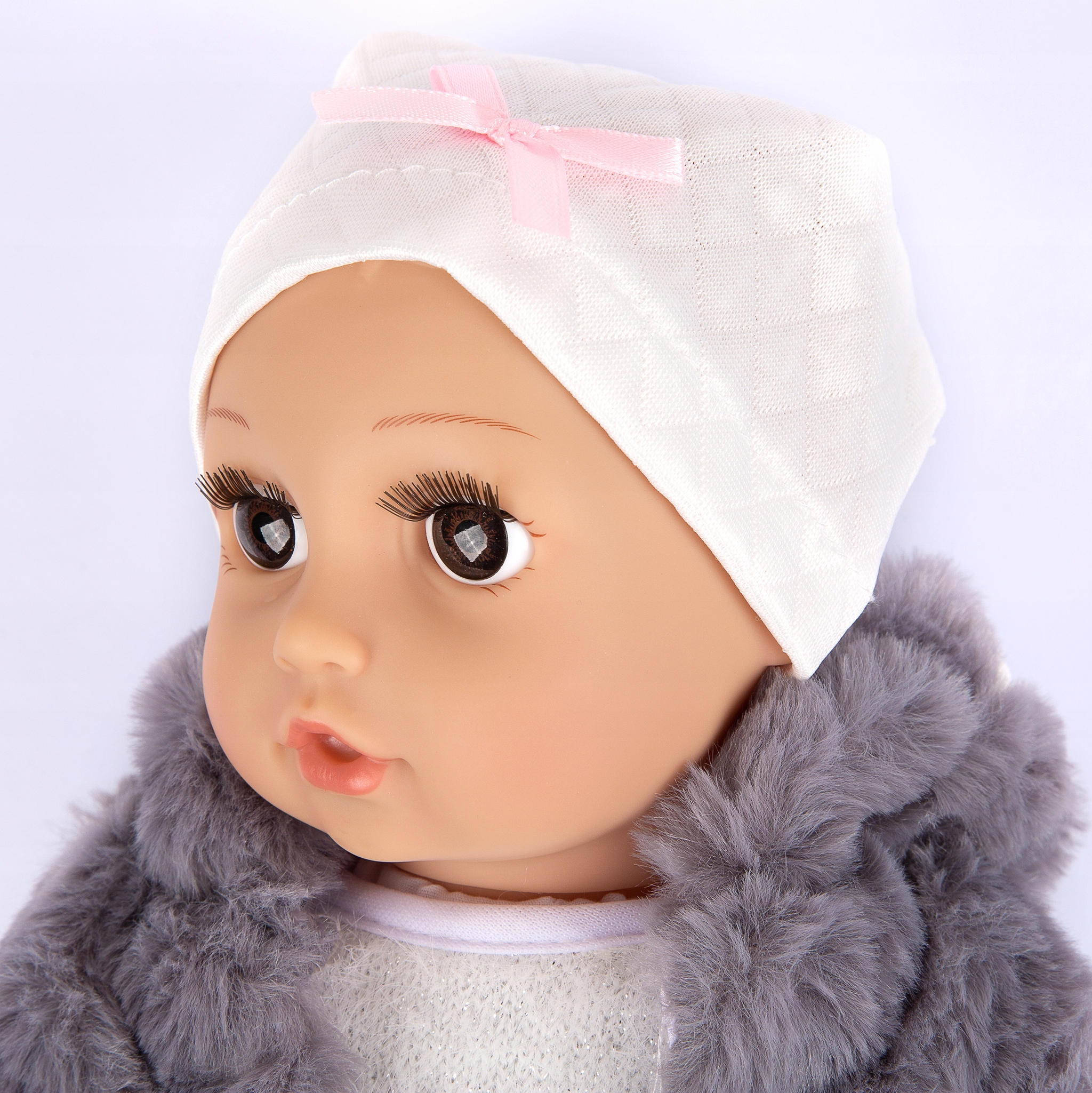 Lalka bobas ma wesołą, słodką minkę i duże oczka z pogodną buźką. Wygląda jak prawdziwe dziecko ubrane w mięciutkie ciuszki.