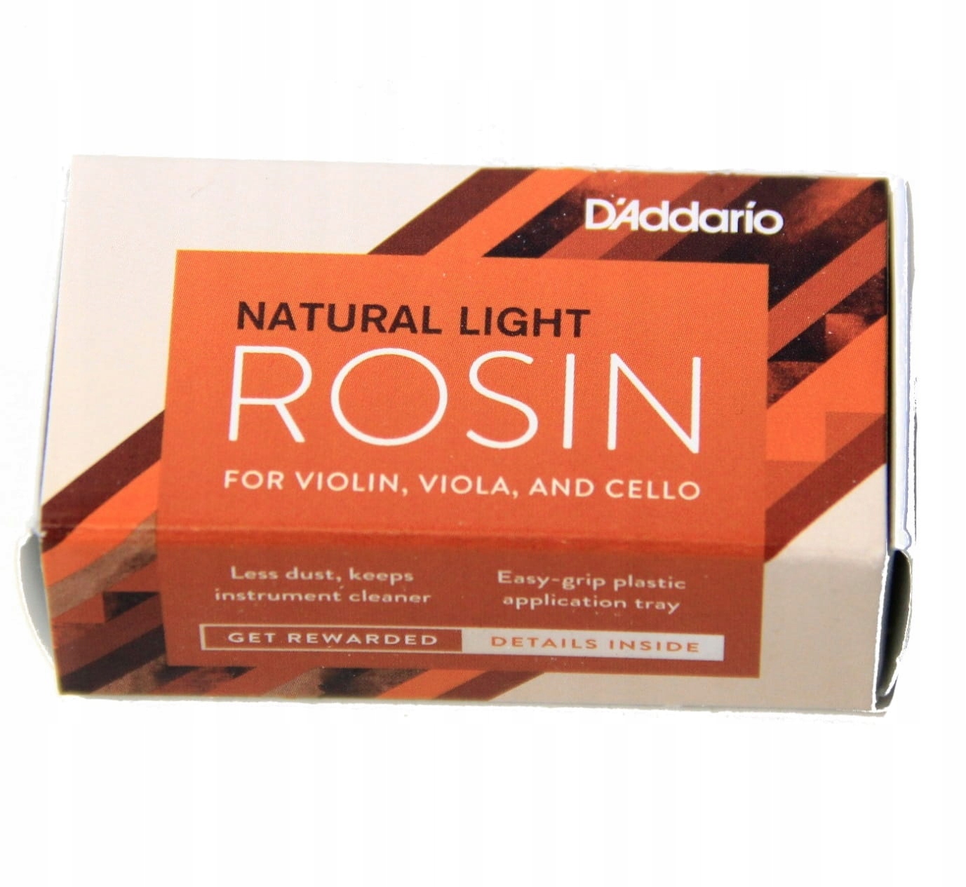 Zapakowana w estetyczne pudełko oraz ramkę z tworzywa sztucznego ułatwiającą rozprowadzenie kalafonii na smyczku.