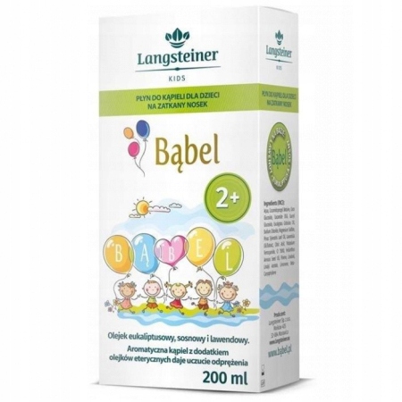 Langsteiner Bąbel to płyn do kąpieli na zatkany nosek dla dzieci od 2 roku życia. Doskonale sprawdzi się do przygotowania aromatycznej kąpieli z olejkami eterycznymi, szczególnie w okresie zachorowań. Produkt wytwarza obfitą, pachnącą pianę, która uprzyjemnia czas kąpieli i wspiera dziecko w relaksie.