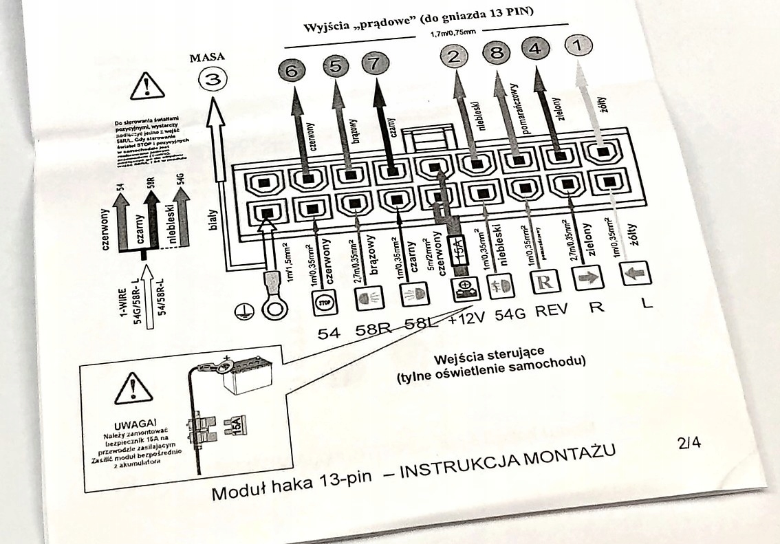 Elektroniczny moduł do haka holowniczego 13-pin, jest przeznaczony do instalacji elektrycznej 12V, do podłączenia gniazda 13 pin, instalacji haka w samochodach, w których stosowane są komputerowe pokładowe kontroli oświetlenia, służących do: