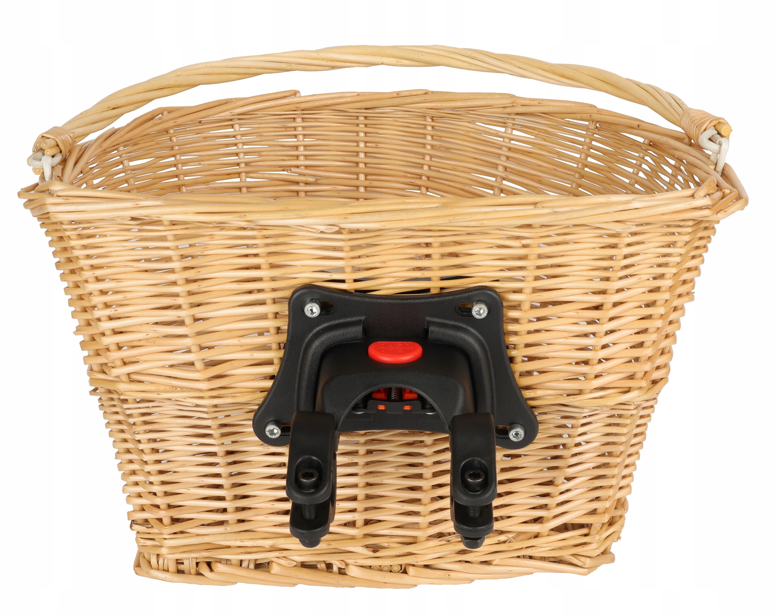 Montaż: do kierownicy montuje się uchwyt, do którego za pomocą przycisku przypinamy lub odpinamy koszyk.