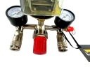 Presostat wyposażony w czytelne zegary, 2 szybkozłączki, reduktor ciśnienia