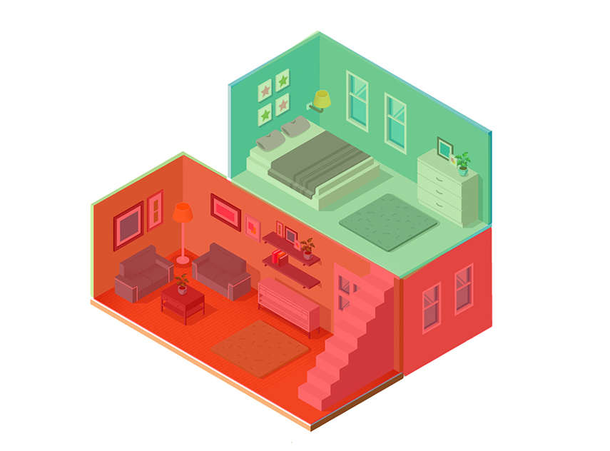 Описание работы: зеленым цветом обозначена внутренняя зона, свободное передвижение, т. е. неактивная зона-на изображенной графике это спальня, с другой стороны, красным цветом является внешняя зона, которая активна, то есть после нарушения этого зона будет включать сигнализацию-на изображенной графике это весь первый этаж.