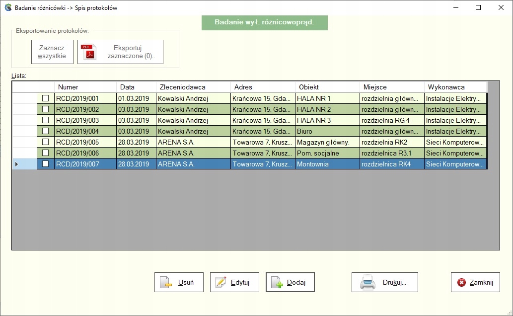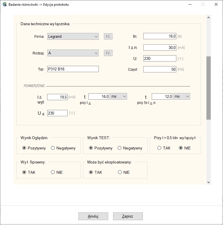 Można sporządzać takie protokoły jak badanie wyłącznika różnicowoprądowego, sprawdzanie skuteczności ochrony przeciwporażeniowej, pomiarów rezystancji izolacji w instalacjach oraz rezystancji uziomów / odgromów.