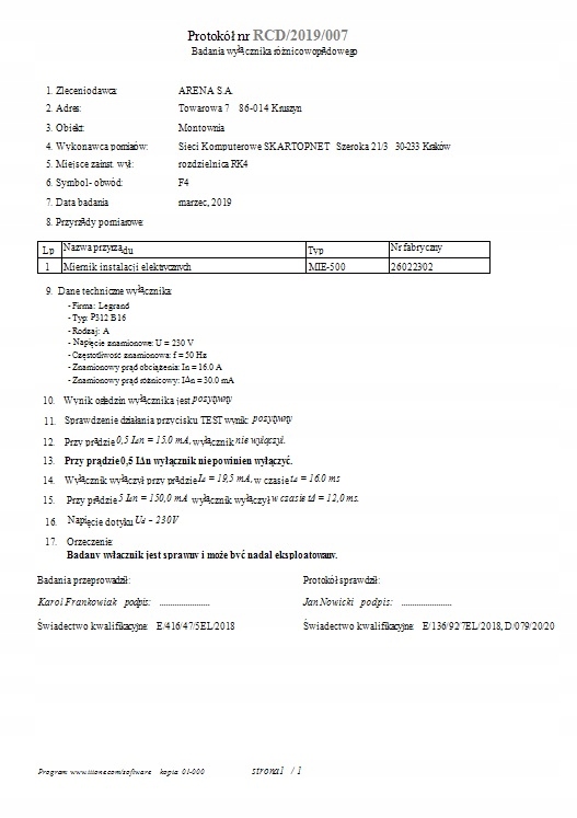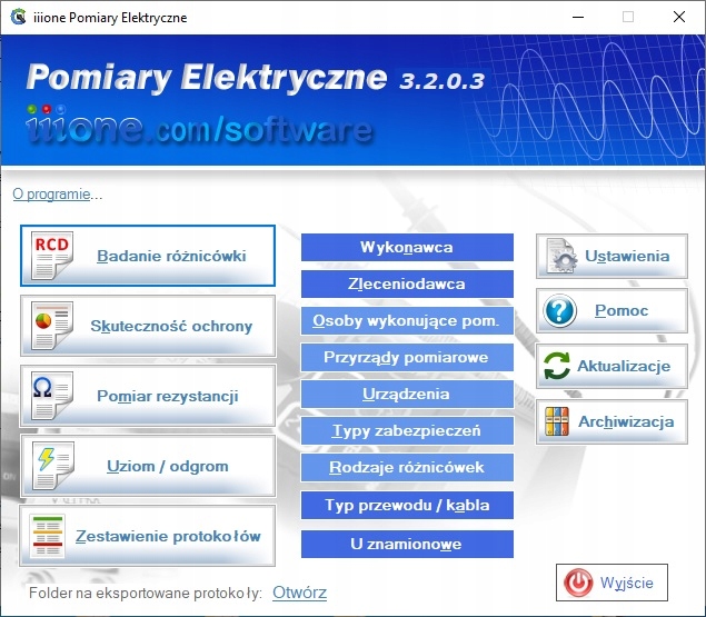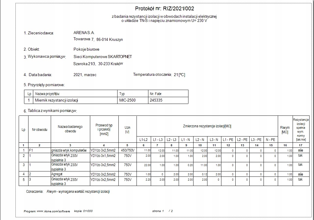 Program iiione Pomiary Elektryczne 3.2, tworzy protokoły ze zgromadzonych pomiarów.