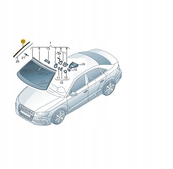 Uszczelka znajduje się przy szybie czołowej, na słupku.