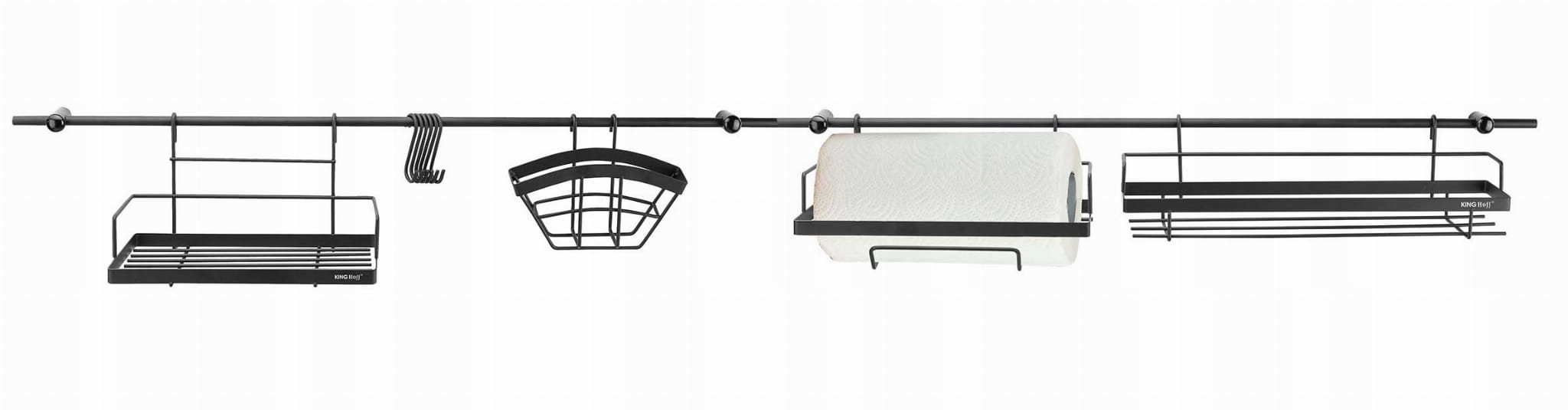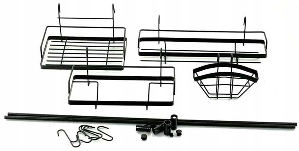 16 częściowy reling kuchenny, stalowy, długość około 150 cm, firmy KINGHOFF. Całość wykonana ze stali lakierowanej w kolorze czarnym. Możliwość dowolnej konfiguracji.
