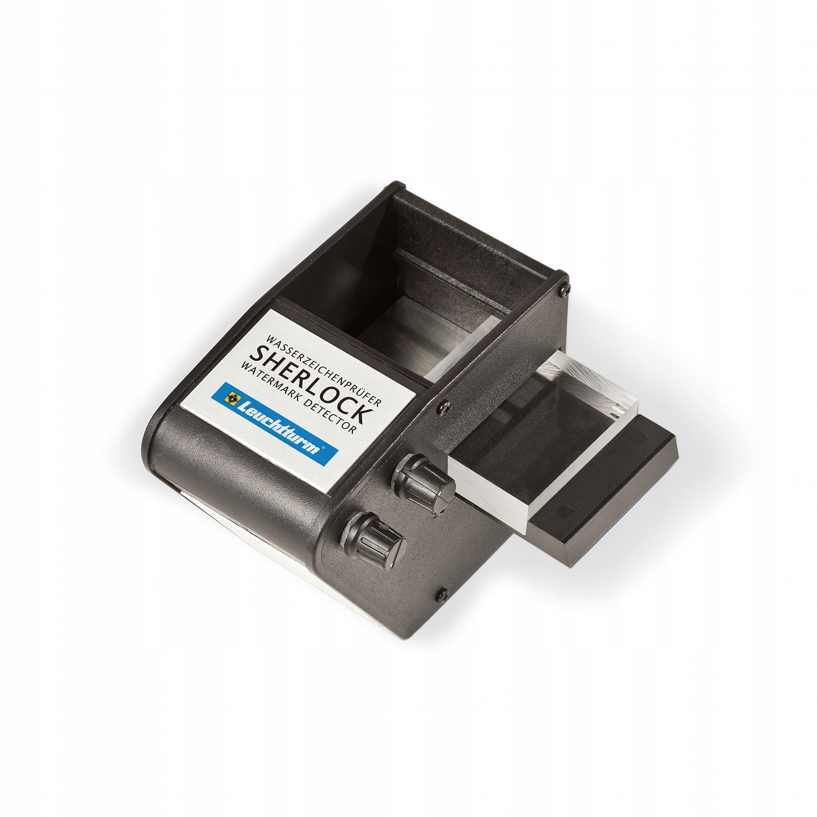 Detektor znaków wodnych SHERLOCK jest łatwym w użyciu i bezpiecznym dla znaczków urządzeniem do szybkiego identyfikowania i weryfikowania znaków wodnych.