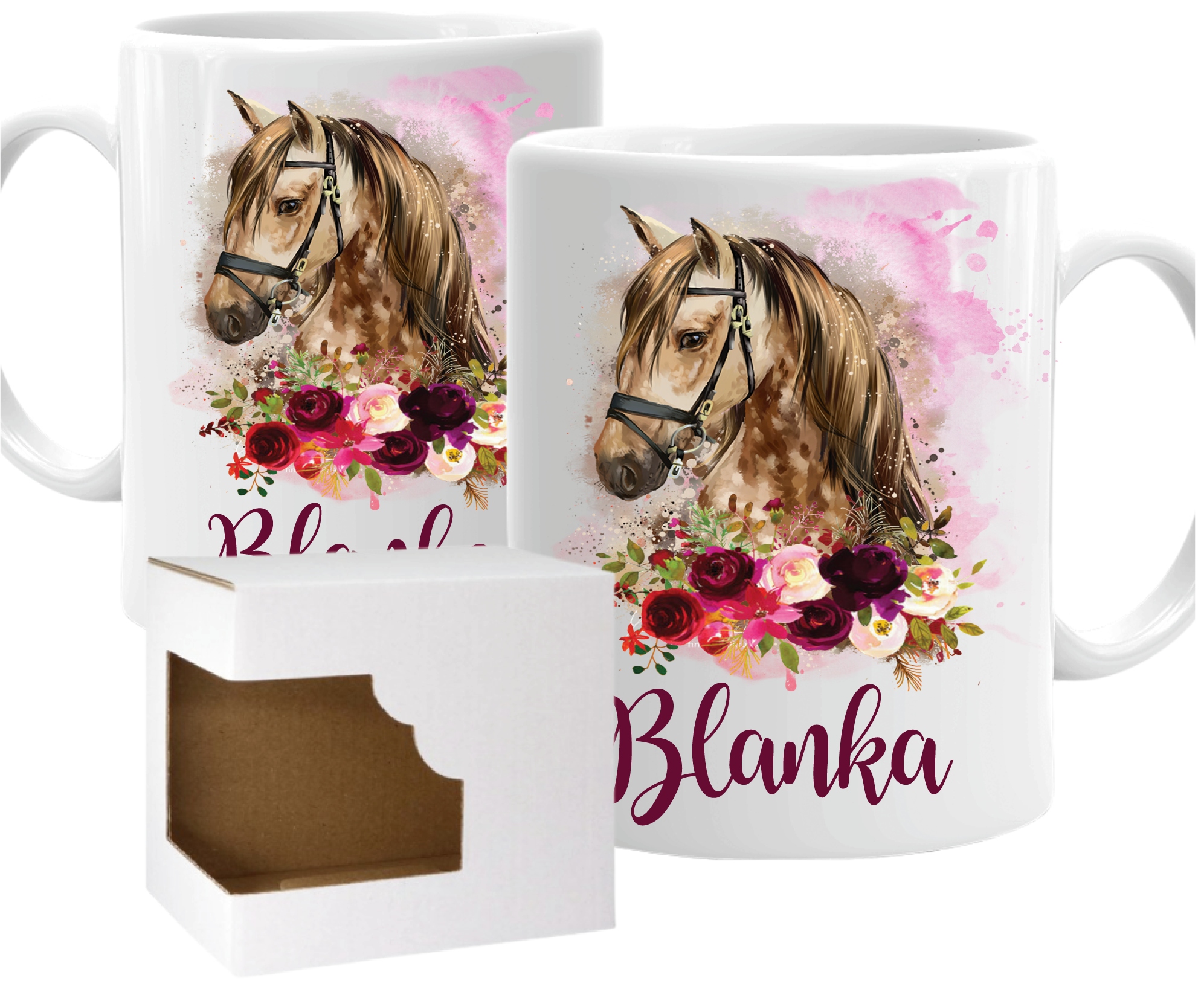 Тематика, тема Zestaw Poduszka + Kubek z motywem KONIA KOŃ BORDO + DOWOLNE IMIĘ
