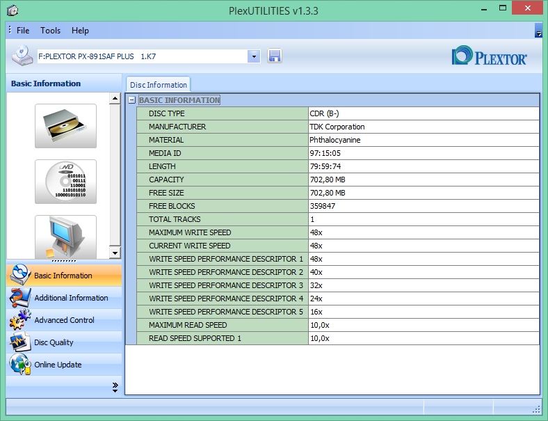 Płyta posiada świetną jakość i technologię wykonania TDK- warstwa nagrywana Organic Dye i niezmienną od lat strategie zapisu co powoduje że nawet najstarsze napędy CD-RW nie maja problemów z rozpoznawaniem i zapisem tego nośnika CD-R .