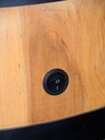 - impregnowany specjalnym olejem do mebli w kolorze dąb (jasny brąz) ze stalowymi obręczami malowanymi na czarno,