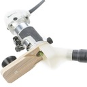 Taka modyfikacja frezarki górnowrzecionowej Makita RT0700 itp. znacznie ułatwi i przyśpieszy obróbkę obrzeża PCV podczas zaokrąglania krawędzi płyty wiórowej.