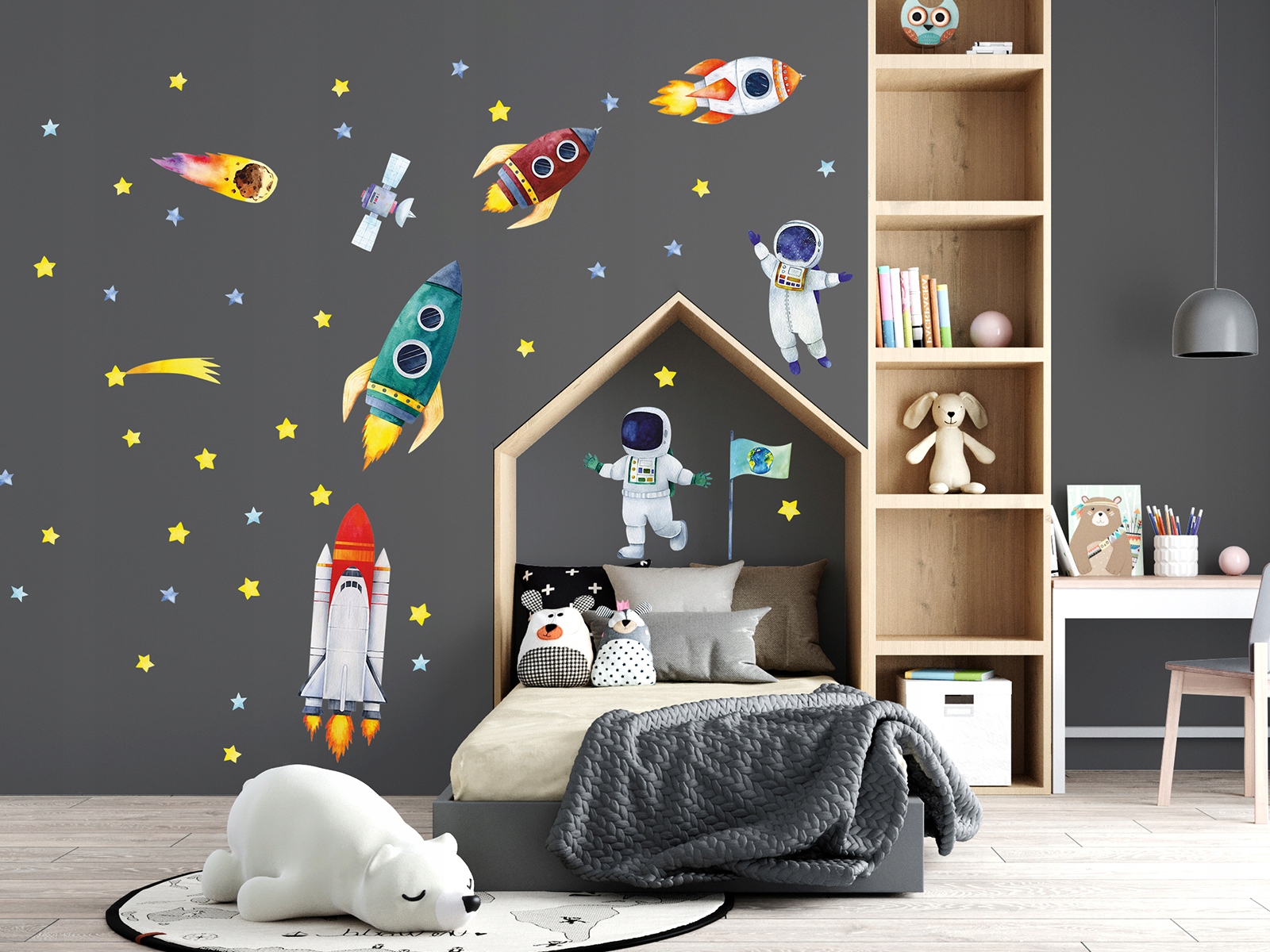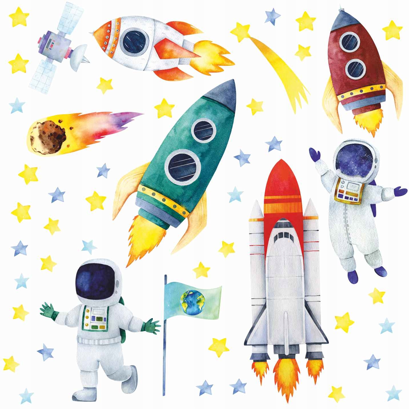 Duże naklejki ścienne Kosmos Rakiety i Astronauci