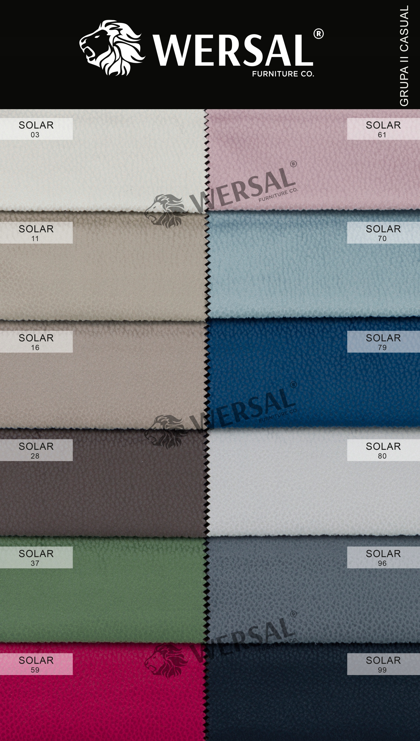 SOLAR - tkanina meblowa miękka i mięsista z wyraźną nowoczesną, bardzo elegancką i uniwersalną fakturą. Tkanina tapicerska o delikatnym satynowe wykończeniu i ciekawą paletą kolorów. Tkanina Solar to połączenie funkcjonalności EASY CLEAN z cechą PET FRIENDLY, pozwalających na bardzo łatwe usuwanie sierści i zapobieganiu wbijania się jej we wnętrze tkaniny, a przy tym wykazują odporność na zadrapania. Tkanina idealna dla miłośników zwierząt.
