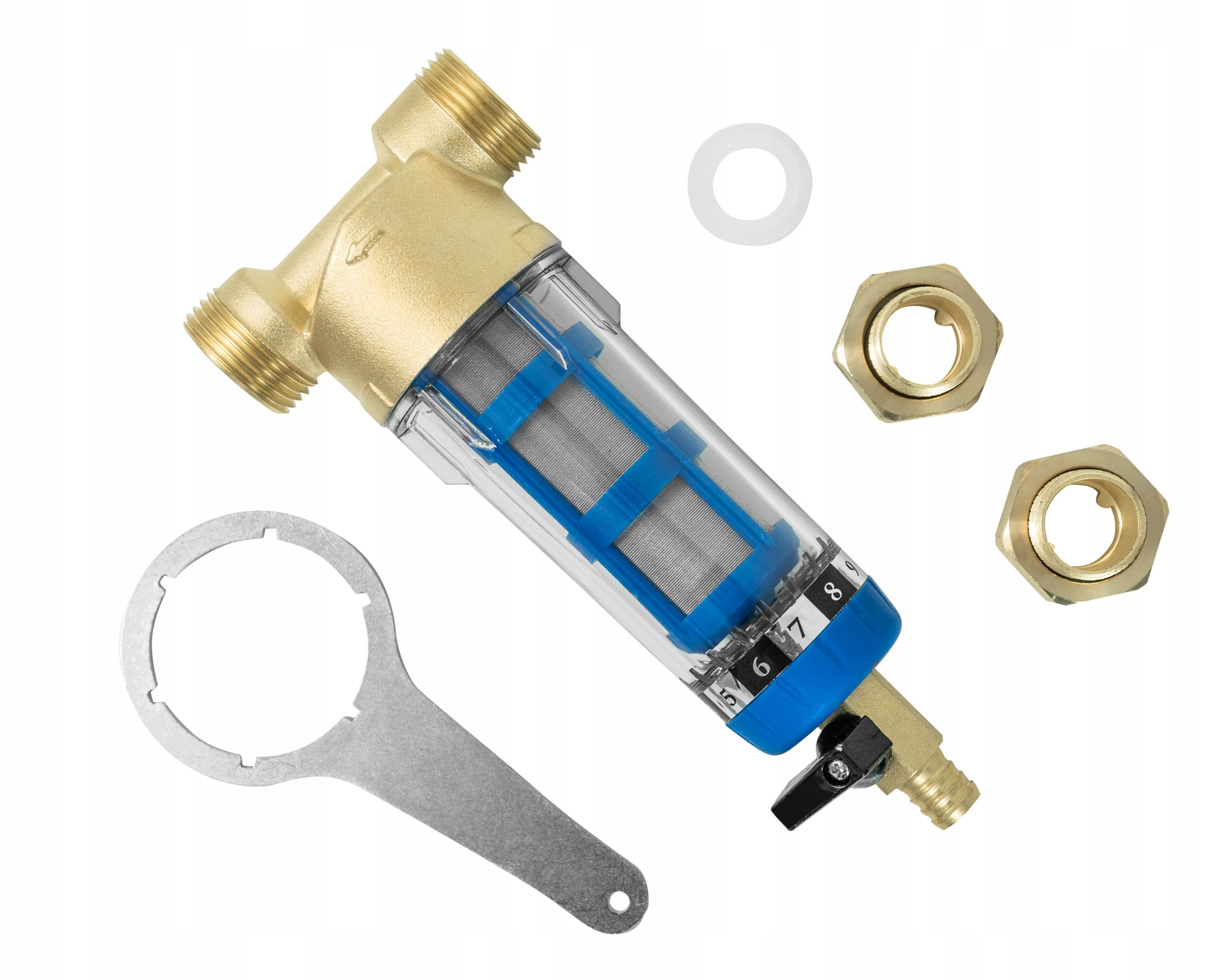 Samoczyszczący filtr wstępny z serii Water Technic zatrzymuje wszystkie zanieczyszczenia mechaniczne na specjalnym osadniku. Oczyszczamy go otwierając raz na kilka miesięcy zaworek spustowy, którego końcówkę można wężykiem połączyć z kanalizacją. Nie ma konieczności wymiany wkładów! Filtr jest bardzo trwały (mosiężna głowica i przyłącza). Przezroczysty korpus pozwala kontrolować stan zabrudzenia.