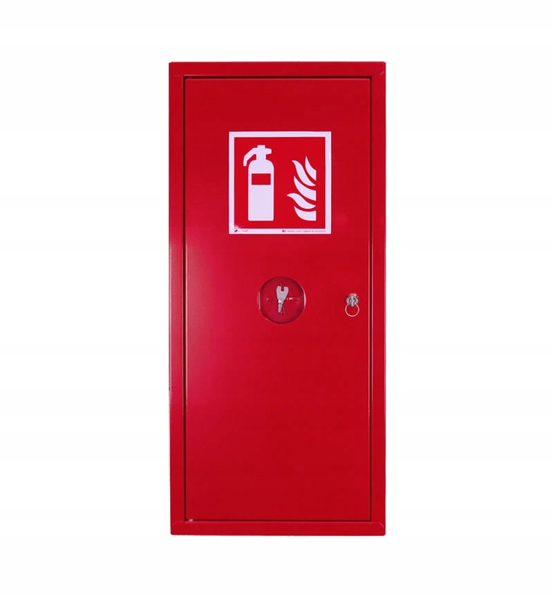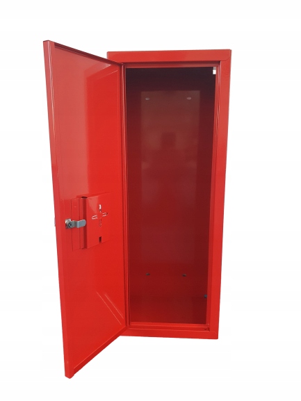 Szafki metalowe na gaśnice służą do przechowywania gaśnic. Drzwi szafki pełne wykonane są z blachy o grubości 1 mm.
