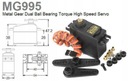 MG-995 to bardzo mocne serwo o olbrzymim, 13 kg momencie. Standardowe serwo z metalowymi trybami do uniwersalnych zastosowań. Idealny i dużo mocniejszy zamiennik serwa HSP 02073.