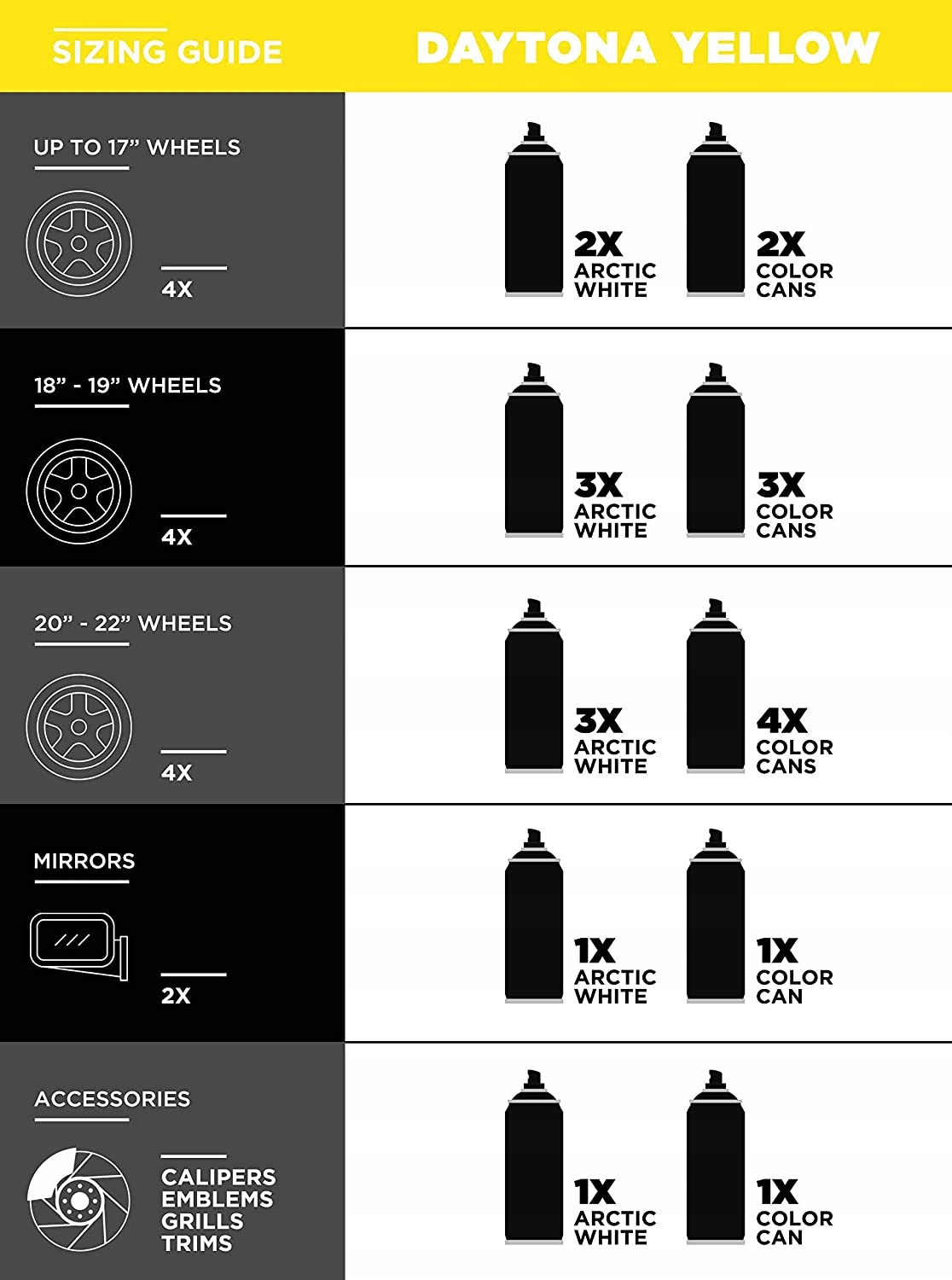 SUPERWRAP™ (2k) покрасьте диски размером 17 дюймов в цвет консервных банок в цвете банка Red” красного цвета. банка банка базового цвета и 2 банки целевого цвета.