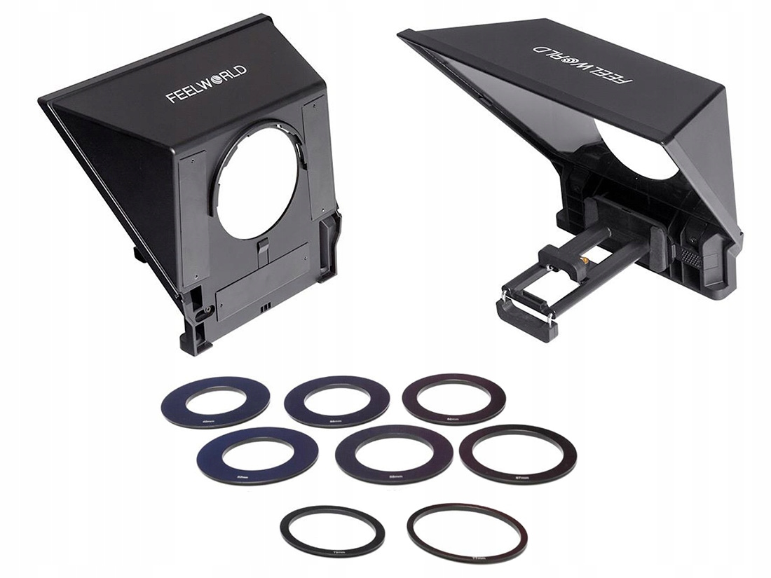 Kompaktowy i funkcjonalny teleprompter Feelworld TP2 przeznaczony do urządzeń mobilnych – smartfonów o szerokości do 8 cm oraz do tabletów o szerokości do 12 cm. Szklana tafla odbijająca zapewnia czytelny obraz wyświetlanego tekstu, zaś dołączone do kompletu adaptery montażowe pozwalają rejestrować osobę mówiącą za pomocą aparatu fotograficznego lub kamery video. Montaż na statyw z gwintem ¼ cala.