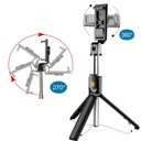 Selfie stick-это продукт, который идеально подходит для всех видов поездок и экскурсии. Его универсальный характер позволяет практически неограниченное использование. Благодаря небольшой размер после складывания легко поместится в сумочку или небольшой рюкзак. Телескопическая выдвижная рукоятка позволяет даже большой группе людей поместиться на одной фотографии. Палка он был оснащен триподом, то есть тремя функциональными ножками. Они позволяют поставить телефон на устойчивой поверхности, без необходимости держать Stick в руке. Такое решение отлично работает при съемке персонажа полностью, благодаря съемному пульту, работающему по технологии bluetooth, сам процесс не требует привлечения посторонних. Палка также была оснащена головка 360°, и зеркало, расположенное на ее задней части.