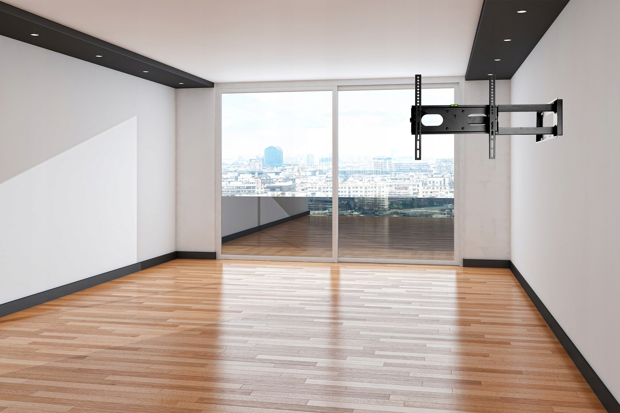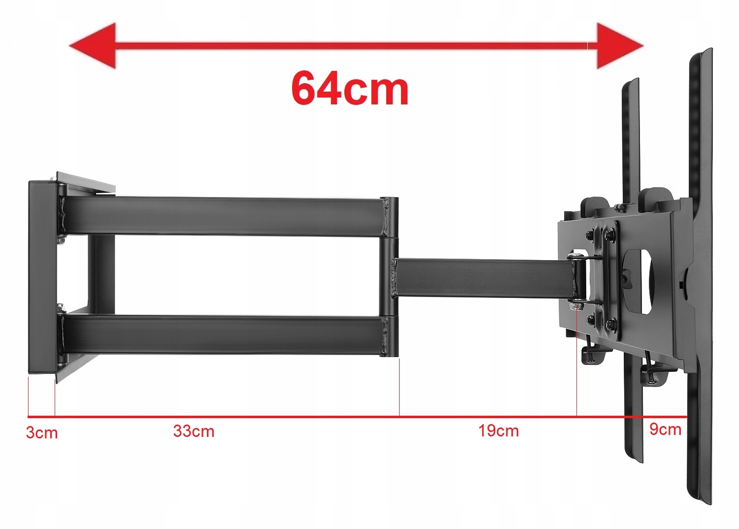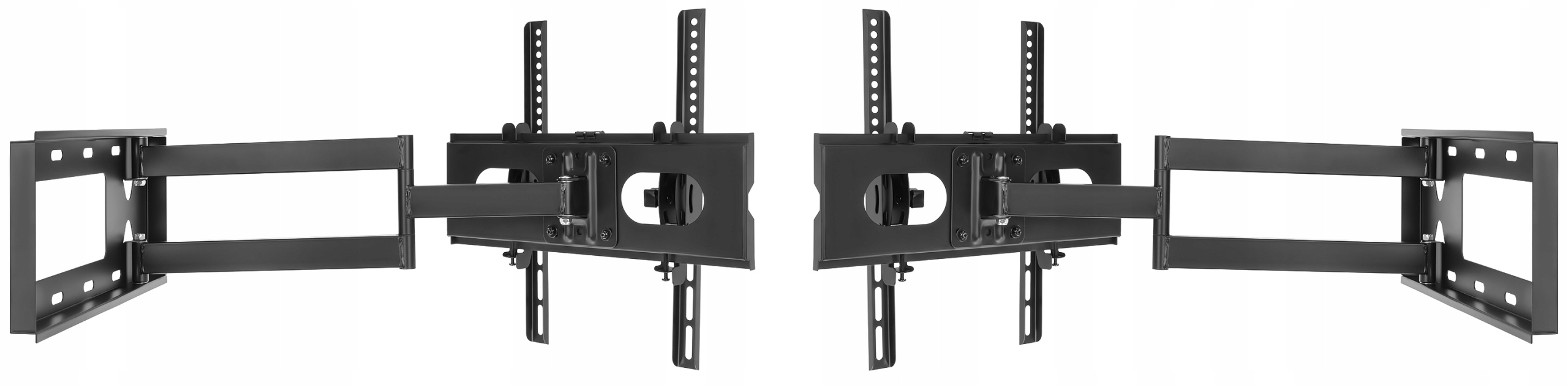 Uchwyt jest przeznaczony dla użytkowników którzy korzystają z jednego ustawienia telewizora. W przypadku kiedy korzystamy z kilku ustawień jednocześnie np. raz telewizor jest przy samej ścianie a innym razem telewizor prostopadle do ściany to nie jesteśmy w stanie wypoziomować telewizora dla obu ustawień jednocześnie. Uchwyt posiada regulację poziomowania poprzez 4 śruby ale za każdą zmianą ustawienia konieczna jest nowa regulacja poziomu. Dlatego uchwyt ten proponujemy dla osób które raz ustawią telewizor i później nie zmieniają jego pozycji.