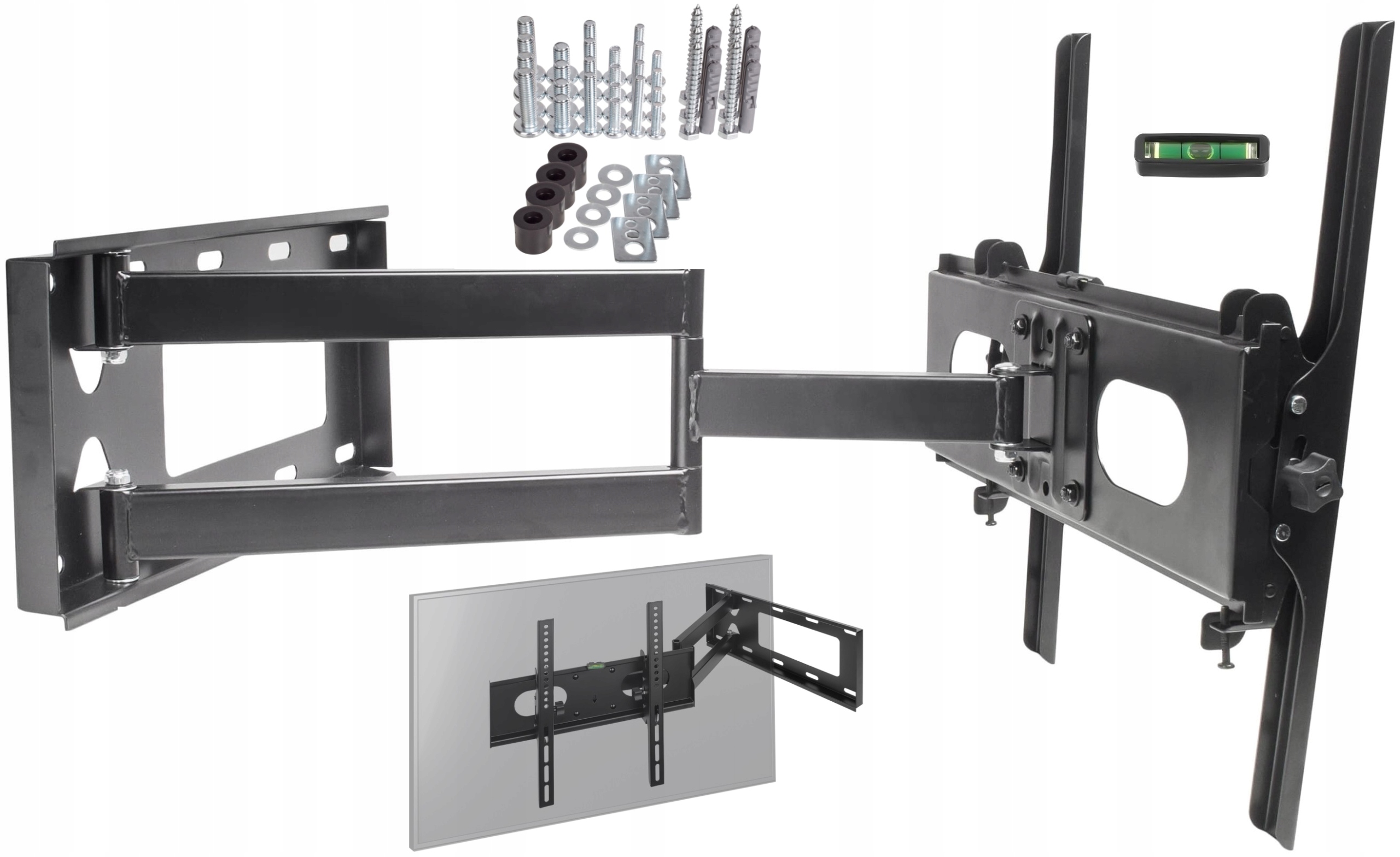 Uchwyt zawiera uniwersalny zestaw śrub do montażu telewizora, który pasuje do większości dostępnych na rynku telewizorów. Może się zdarzyć że twój telewizor będzie potrzebował innych śrub, wtedy należy je zakupić we własnym zakresie.