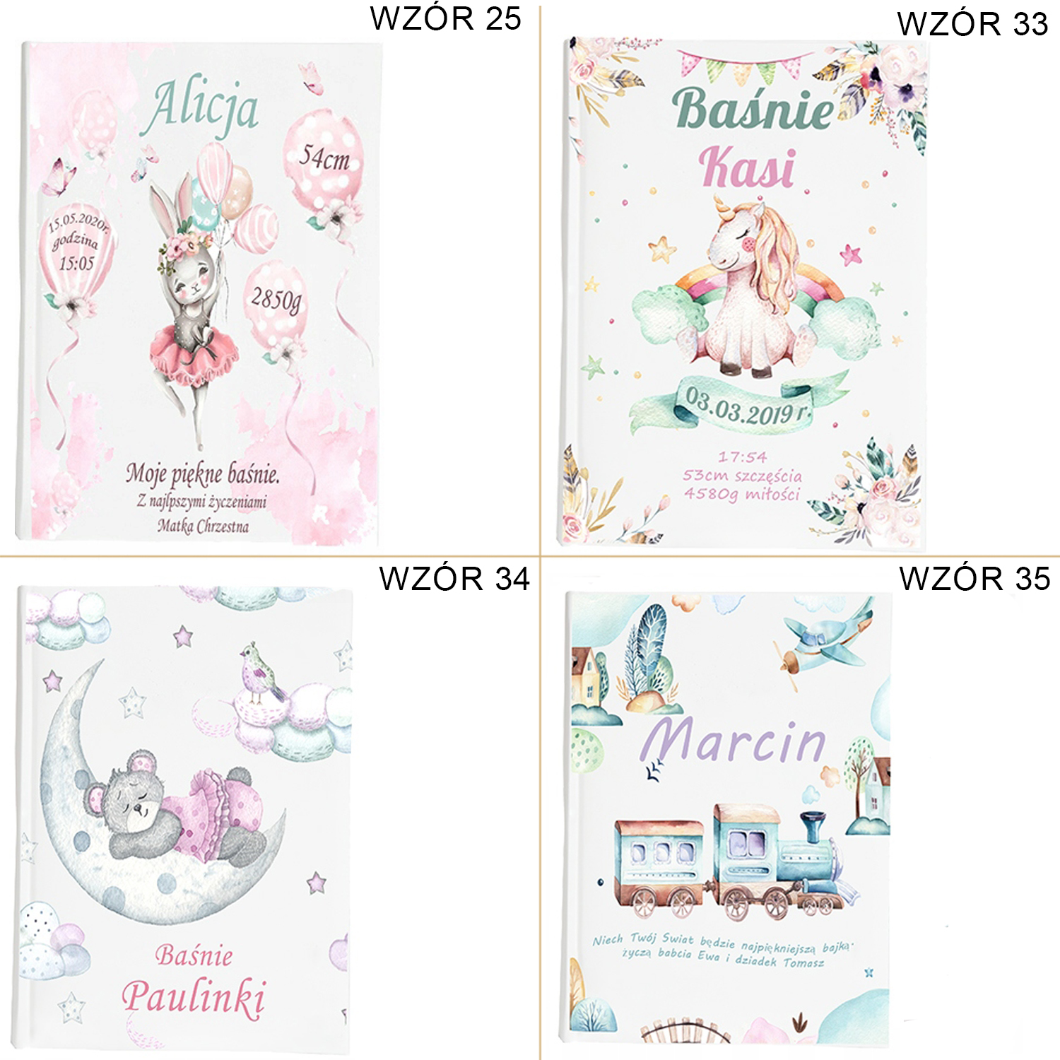 Okładka jest spersonalizowana , mieści się na niej np: Dane dziecka , zdjęcie, dedykacja.