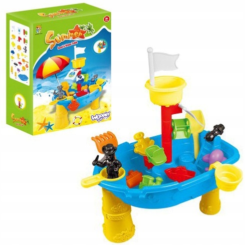 Stół Wodny Statek Piracki od marki WOOPIE dzięki atrakcyjnym kolorom i pirackiemu motywowi sprawia, że zabawa jest przyjemniejsza i bardziej pomysłowa. Zestaw zawiera dużo dodatków do zabawy, w tym foremki, łódkę i łopatki. Za pomocą kubeczka dziecko może wlewać wodę po maszcie i zobaczyć jak woda się przemieszcza po wodnych młynkach lub wyłowić dodatki np. pirata. Zestaw jest świetnym produktem do zabawy w domu, jak i na zewnątrz. Twoje dziecko będzie zachwycone w zabawę w łowienie rybek.