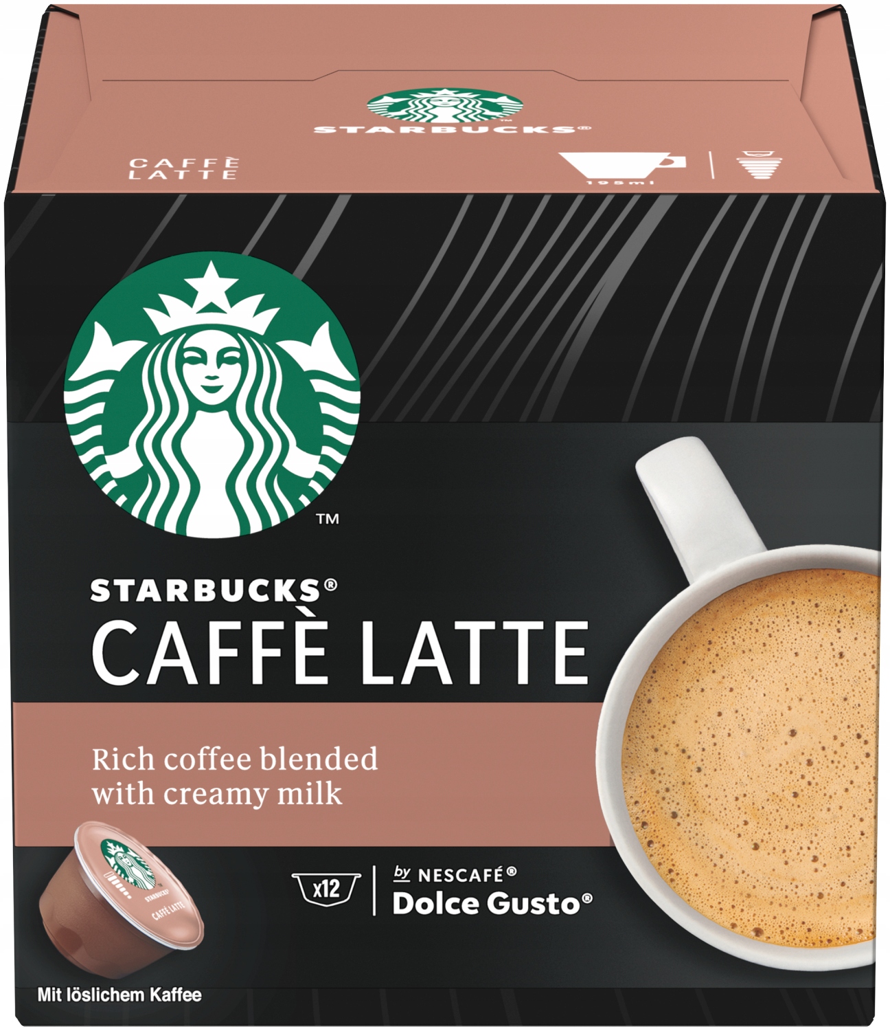 В комплект входит также новинка! Starbucks®. Сейчас эту нежную на вкус кофе приготовите дома в экспрессе NESCAFÉ® Dolce Gusto®.