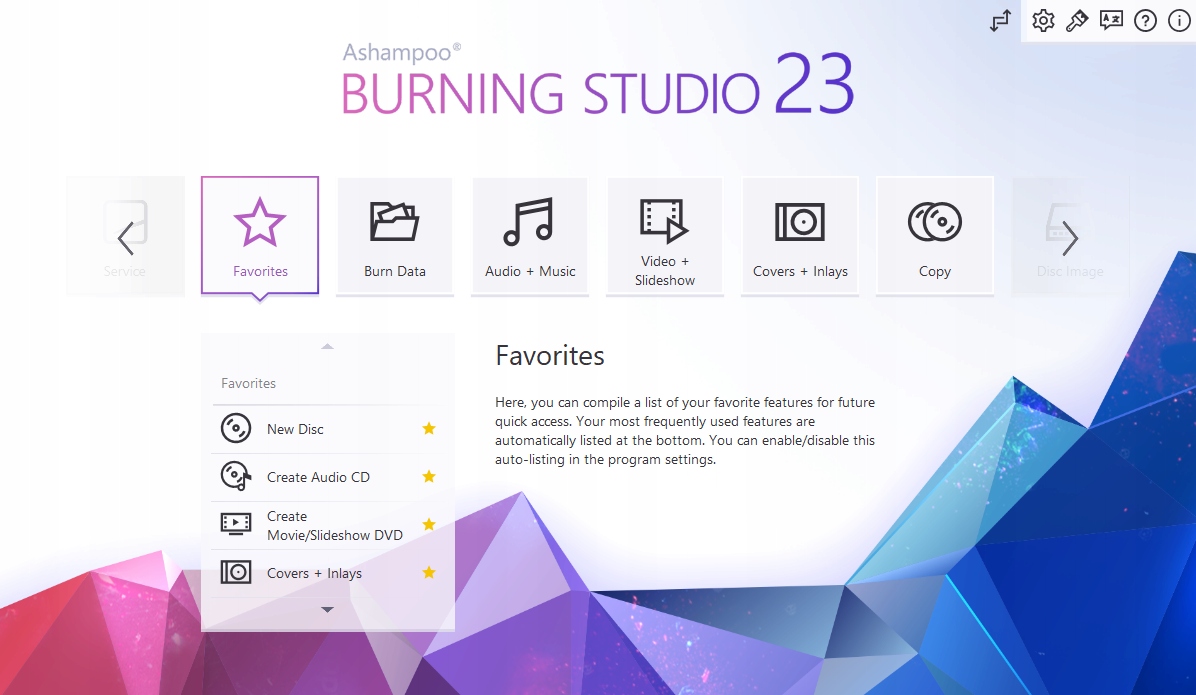 Приложение Ashampoo ® Burning Студия 23 полностью совместима с операционной системой Windows 11 и, конечно же, взаимодействует с операционные системы Windows 7, 8 и 10. Удобная функция быстрого извлечения-самый быстрый способ извлечение аудио с компакт-дисков без ручного управления. Мы также получили много от наших клиентов информации о автомагнитоле, и мы были рады добавить представленные модели в базу данных данных. Кроме того, мы улучшили приложение во многих аспектах, чтобы сделать его более стабильным и быстрым иона работала с различным оборудованием.