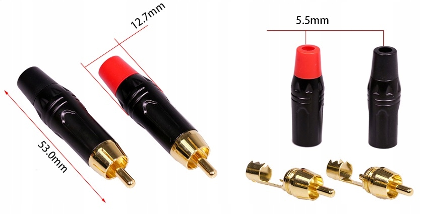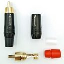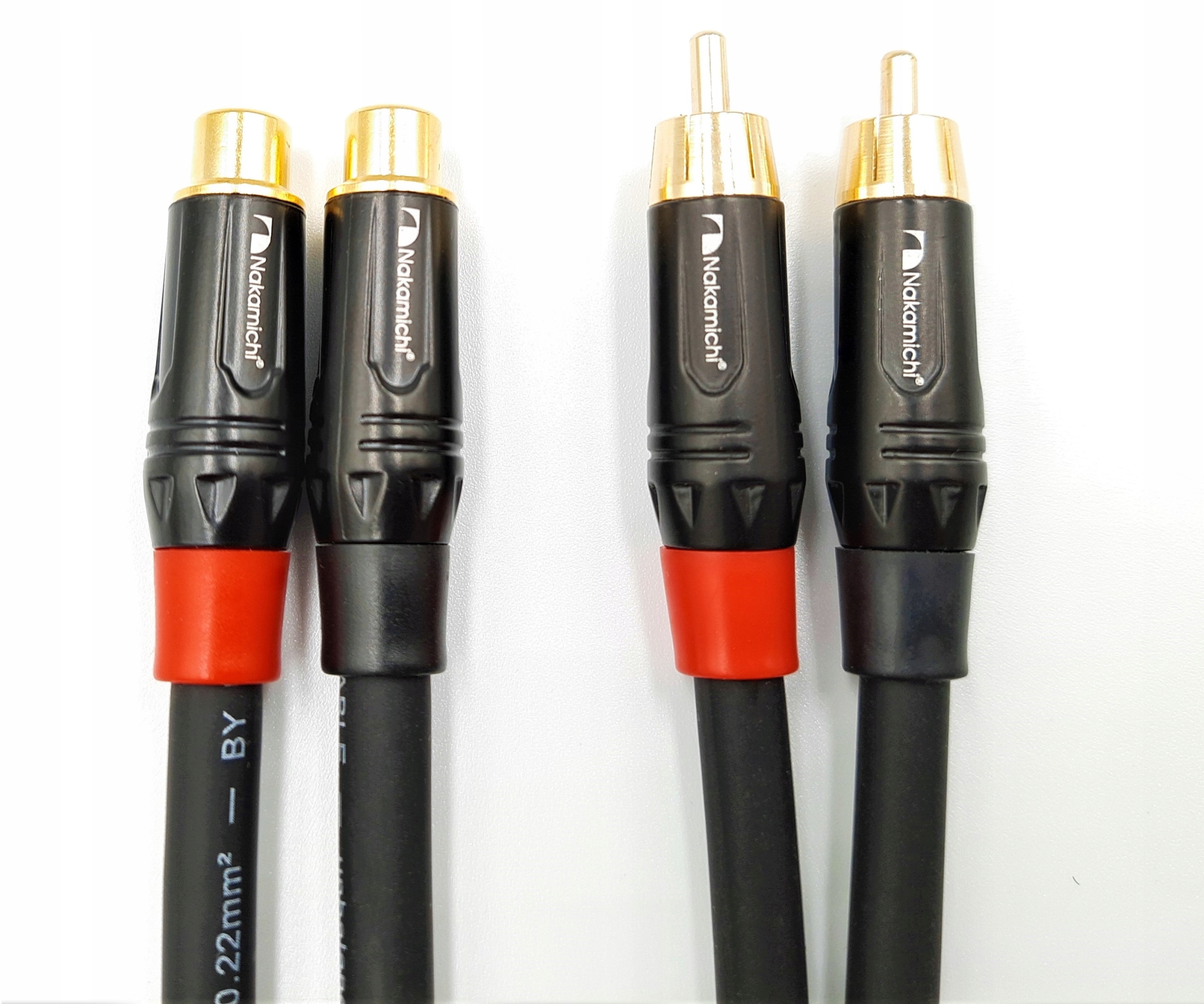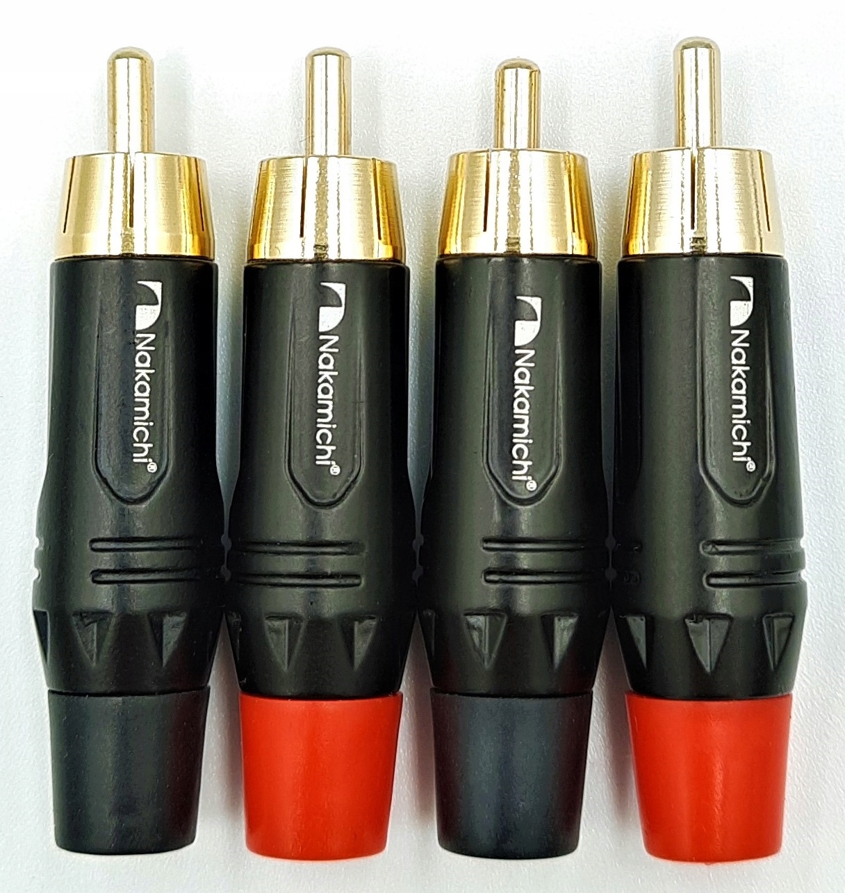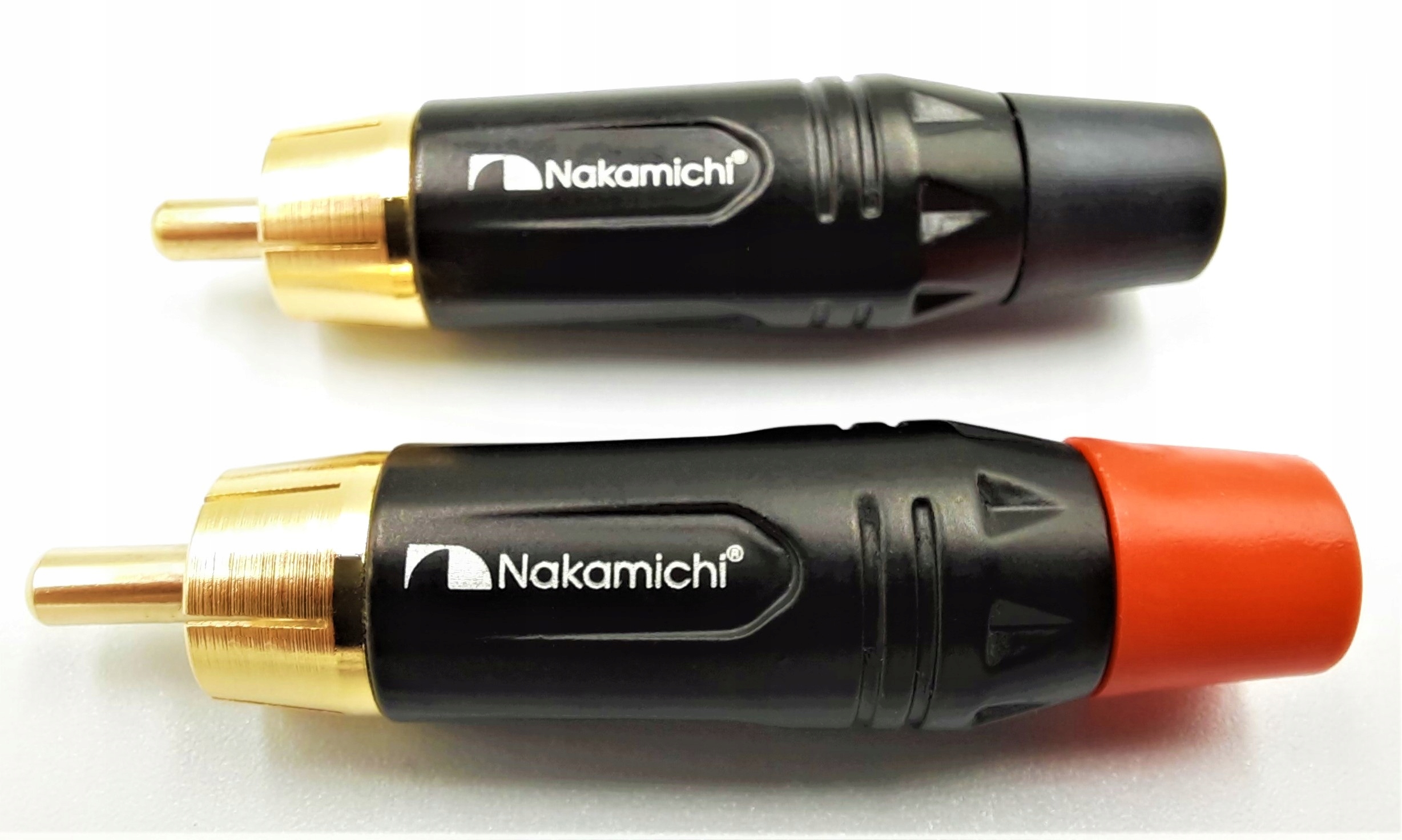 Wysokiej jakości, całkowicie metalowe wtyki cinch RCA Nakamichi z silikonowym zaciskiem ogonowym. Platerowane 24k złotem. Izolacja teflonowa / elastyczny miedziany trzpień środkowy.