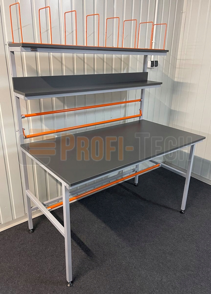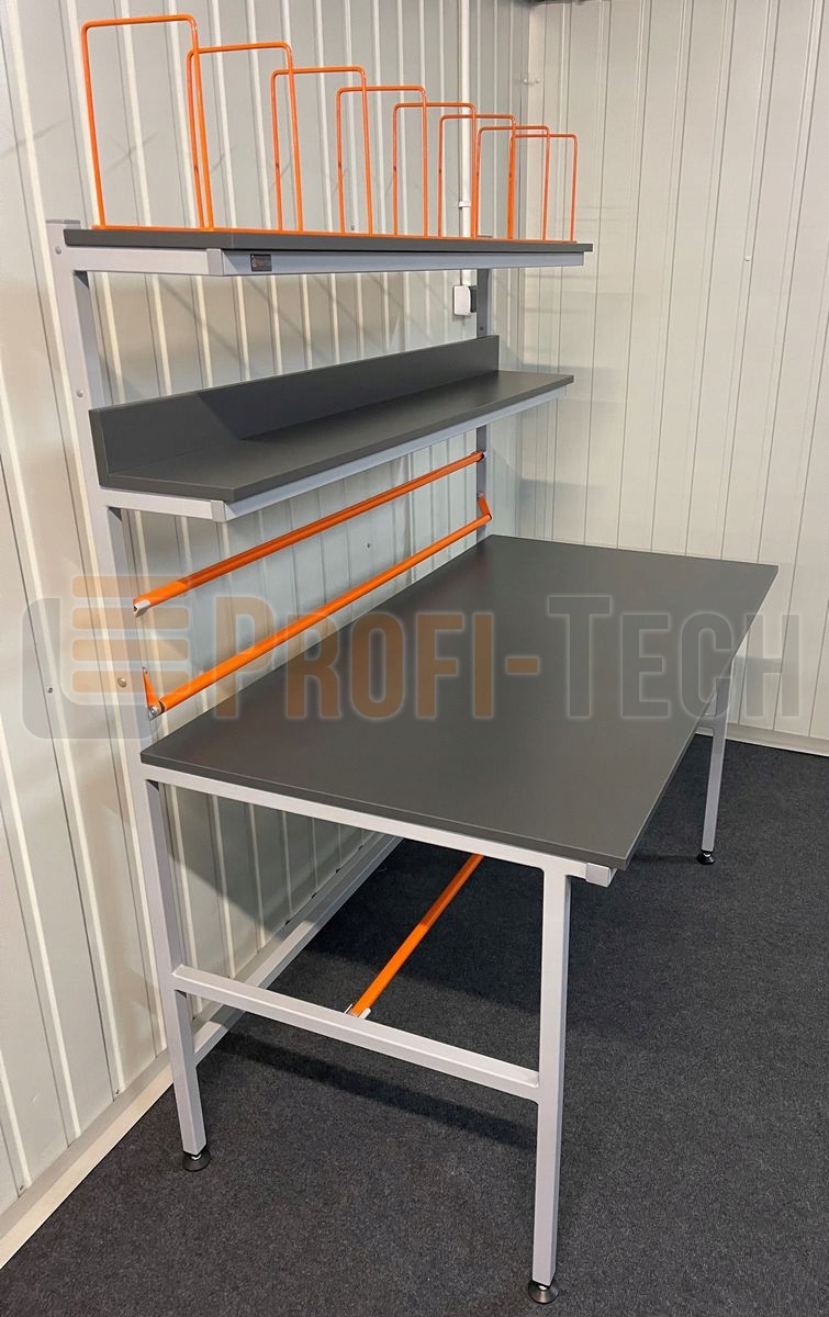 Столы и стойки они изготовлены из стальных профилей, которые были надежно закреплены с помощью лакировки порошкового покрытия, края профилей заполнены пробками